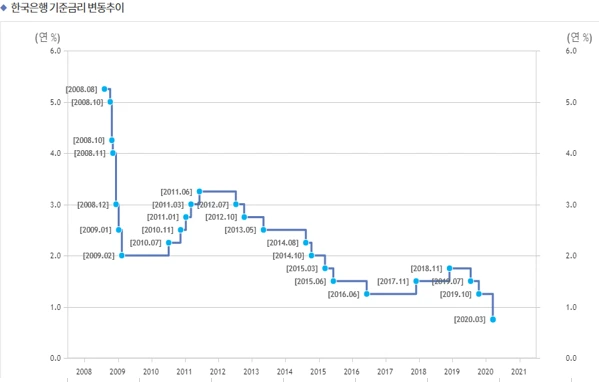 마지막으로 금리입니다. 미국의 0.5%와 1%의 연 다른 인하에 맞춰 한국 역시 0.5%의 큰 하락을 감행하면서 건국이래 최저 수준인 0.75%입니다. 금리 인하가 경기 침체 시 활용되는 방안 중 하나인 듯이, 은행업종을 제외한 모든 업종이 대출 부담이 감소하여 호재로 작용합니다. 물론, 예금과 같은 금융수익으로 많은 이익을 창출하던 소수의 기업에게는 악재이고, 인하 전에 많은 고정금리 대출을 받아버린 기업에게는 큰 효과가 없을 것입니다. 하지만, 최근 차입금을 상환하거나 유동부채가 많은 기업과 변동금리 부채가 많은 기업에게 있어서는 이자비용이 확실하게 줄어드는 호재가 될 것입니다.