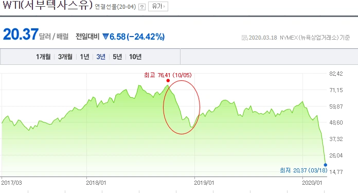 3월 20일 현재 KOSPI는 1500 수준으로 전에 비해 분명 많이 떨어졌습니다. 하지만 위 그래프를 통해 말하고자 하는 것은 아무리 증시 전체가 급락했다 하더라도 무작정 주식을 매수해서는 안된다는 것입니다. 분명 코로나 확산으로 인해 KOSPI가 30% 이상 급락하며 많은 주식들이 저렴해졌고 위기 극복 후에 반등을 하겠지만, 모든 주식에 해당된다고 말하기는 어려워졌습니다. 이제는 급락 후 회복기에 접어들어도 그 수준에서 횡보하거나, 아주 미미한 상승만을 기록하는 주식도 많을 것입니다. 그렇기에 이젠 급락 장에서 더욱 신중해져야 합니다. 약 12년 만에 온 블랙 프라이데이를 이렇게 허무하게 날려버릴 수는 없으니까요. 그렇기에 아무 주식을 매수하기보다는 현재 급락장 속에서 1Q20에 괜찮은 실적을 거둘만한 종목을 찾아봤습니다. 이에 위기 속에서 파격적으로 나타난 1) 저유가 2) 저금리 3) 고달러에 초첨을 맞췄습니다.