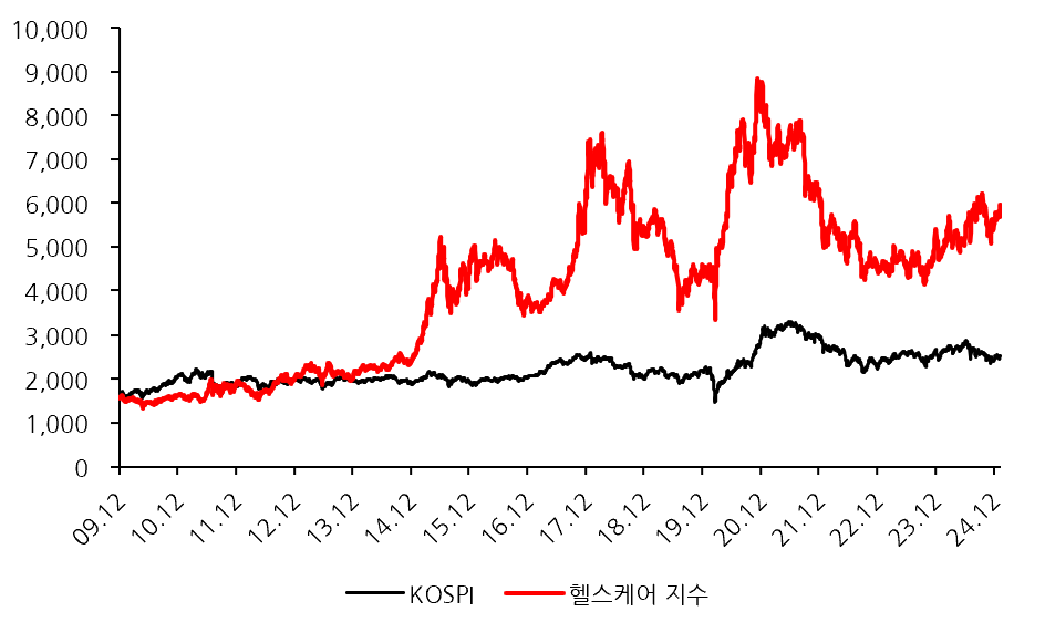 주식을 통해 '바이오'와 관련된 기업은 다 도박판과 같은 곳으로 볼 수 있다. 실로 그런 것이 헬스케어 지수를 보면, KOSPI 대비 급락과 급등을 크게 반복하는 변동성을 보이고 있다. 그도 그럴 것이 임상 및 L/O(라이선스 아웃) 여부에 따라 기대감이나 실망감이 생기기 때문이다. 과거에는 초기였던 만큼 임상 소식이 많았으나, 리가켐바이오, 올릭스 등 최근 기업들을 보면 글로벌 바이오 기업들에게 임상한 약품을 L/O 하며 외화를 벌어들이고 있다. L/O는 규모도 크다 보니, 이를 발표한 기업들의 주가는 크게 오르고 KOSPI 혹은 KOSDAQ에서 많은 비중을 차지하고 있다. 우리나라에서의 바이오에 대한 위상은 계속 높아지고 있다.