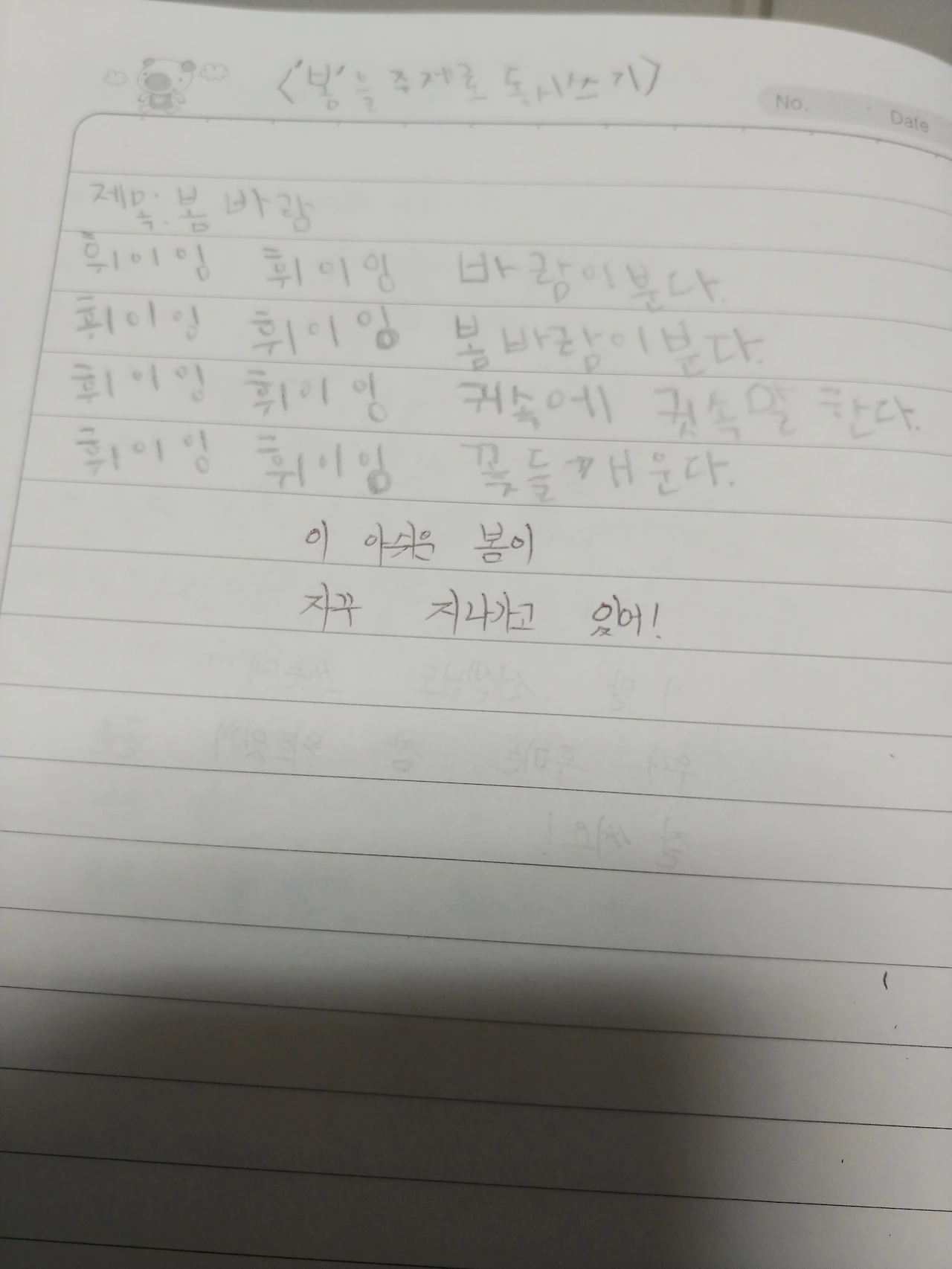 오늘의 주제는 봄을 주제로 동시 짓기. 많은 아이들의 글을 읽어봐 주시고 일일이 코멘트를 달아주시는 선생님이 참 감사합니다.