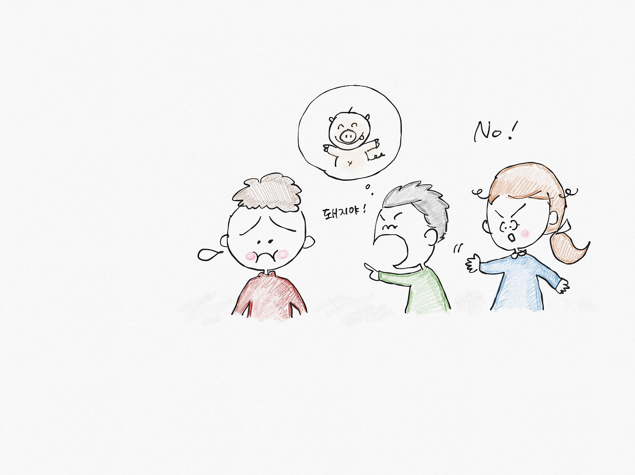 "엄마. 내 짝꿍이 좀 덩치가 큰데 어떤 애가 돼지라고 했어."
