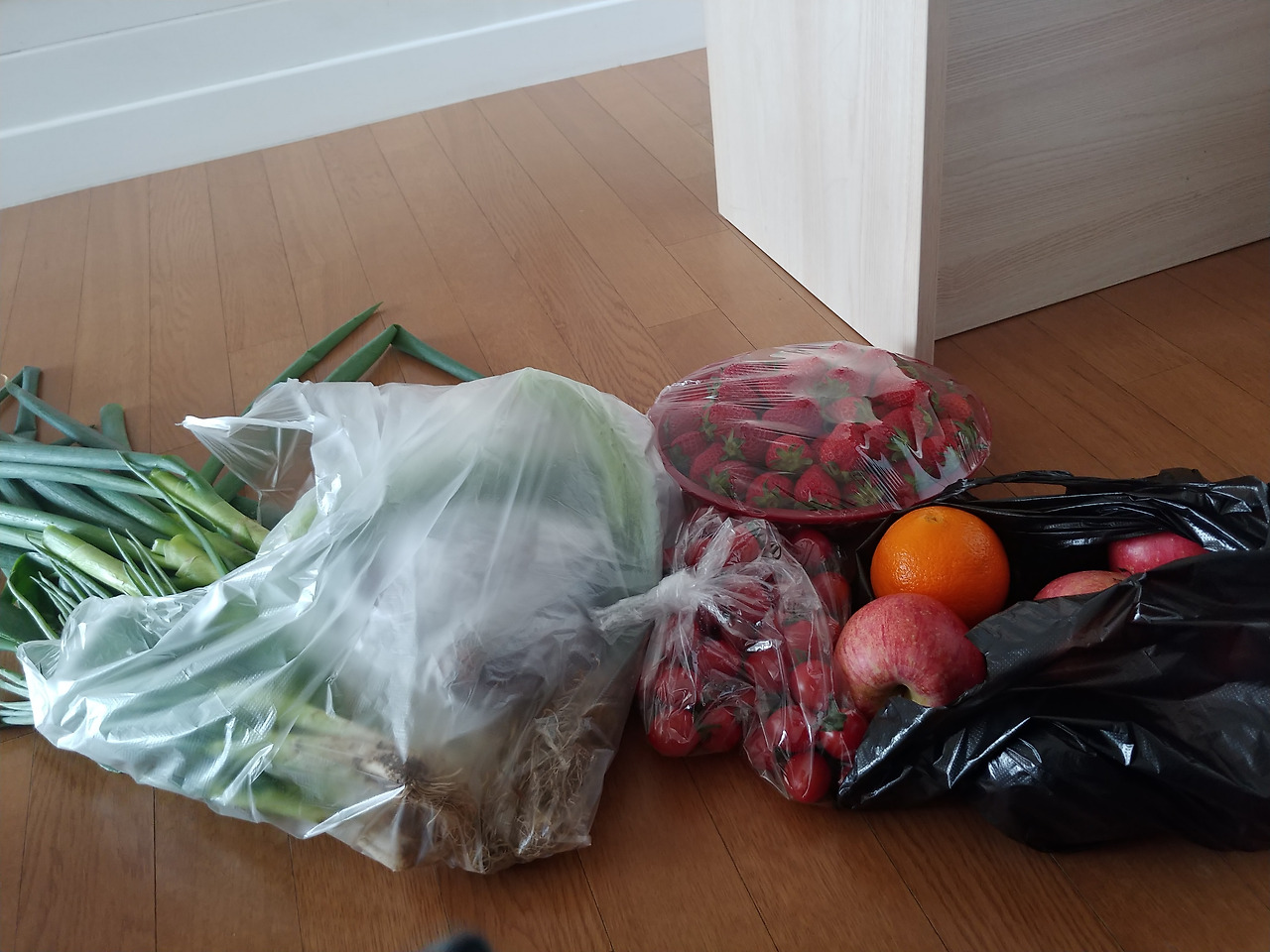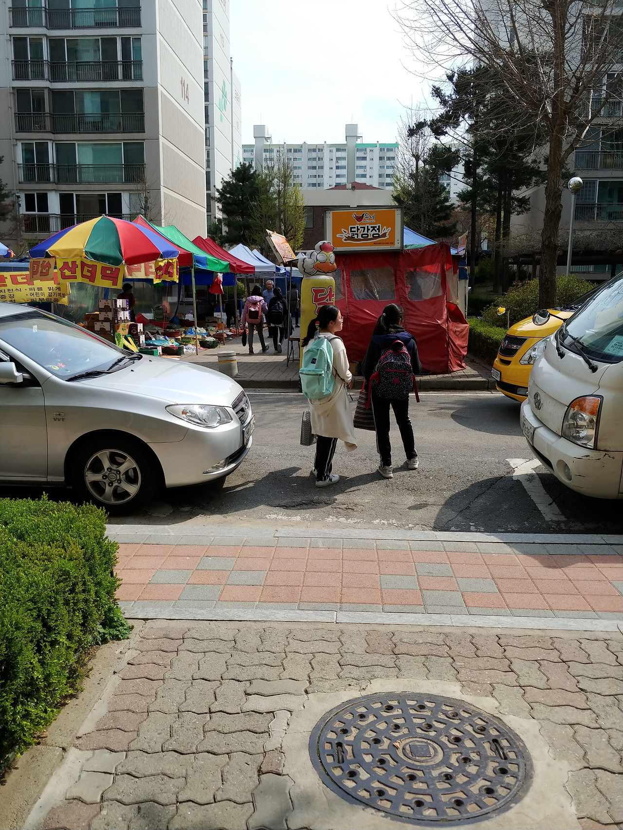 집 앞 장터에 갔더니 싱싱한 야채와 과일들이 엄청 싸다. 비싸기만 하고 시들시들했던 강남의 대형마트들이여, 이제 안녕~ 인심도 좋다. 이것저것 끼워 넣어 주시기까지. 바로 튀겨서 양념장에 버무려주는 닭강정도 싸고 맛있다.
