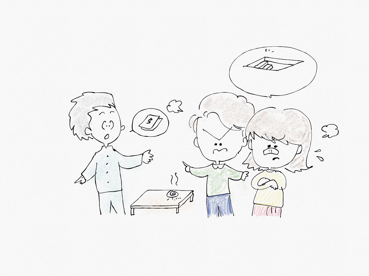 내가 풀빌라에서 수영을 하다 풀장 계단에 콧등이 부딪혀 찢긴 거다. 현지 병원에 가서 소독하고 연고 바르고, 거기까진 좋았다. 그런데 남편이 풀빌라에 모기가 너무 많다며 밤새 모기향을 피웠다가 재가 떨어져 테이블이 녹아 버렸다. 체크아웃을 할 때 프런트에서 녹은 테이블을 변상하라고 하는 게 아닌가?