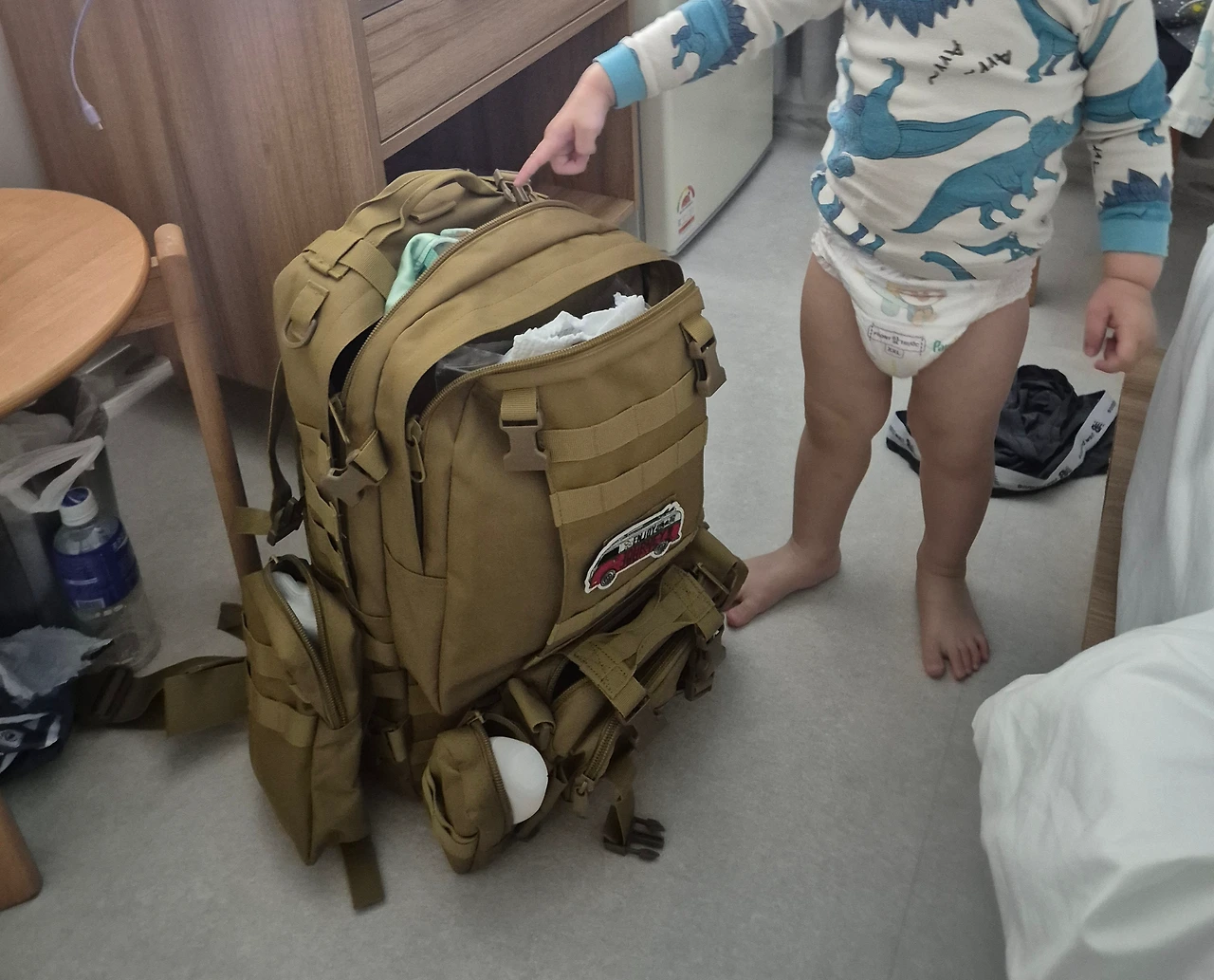 물건을 잘 사지 않는 사람이, 그다지 사고자 하는 것이 없는 여행길을 떠난다면 오는 짐과 가는 짐이 모두 가벼워지기 마련이다. 두 남자는 백팩 하나에 일주일치 짐을 모두 쏟아부었다. 딱 하나, 부피가 제법 큰 아이의 기저귀나 물티슈가 문제였지만 여행지에서 어떻게든 해결해 보기로 하였다. 카메라도 넣었고 심지어 책도 한 권 넣었다. 등에는 가방을, 가슴팍에는 아이를 올려두니 기막힌 균형이 이루어졌다.