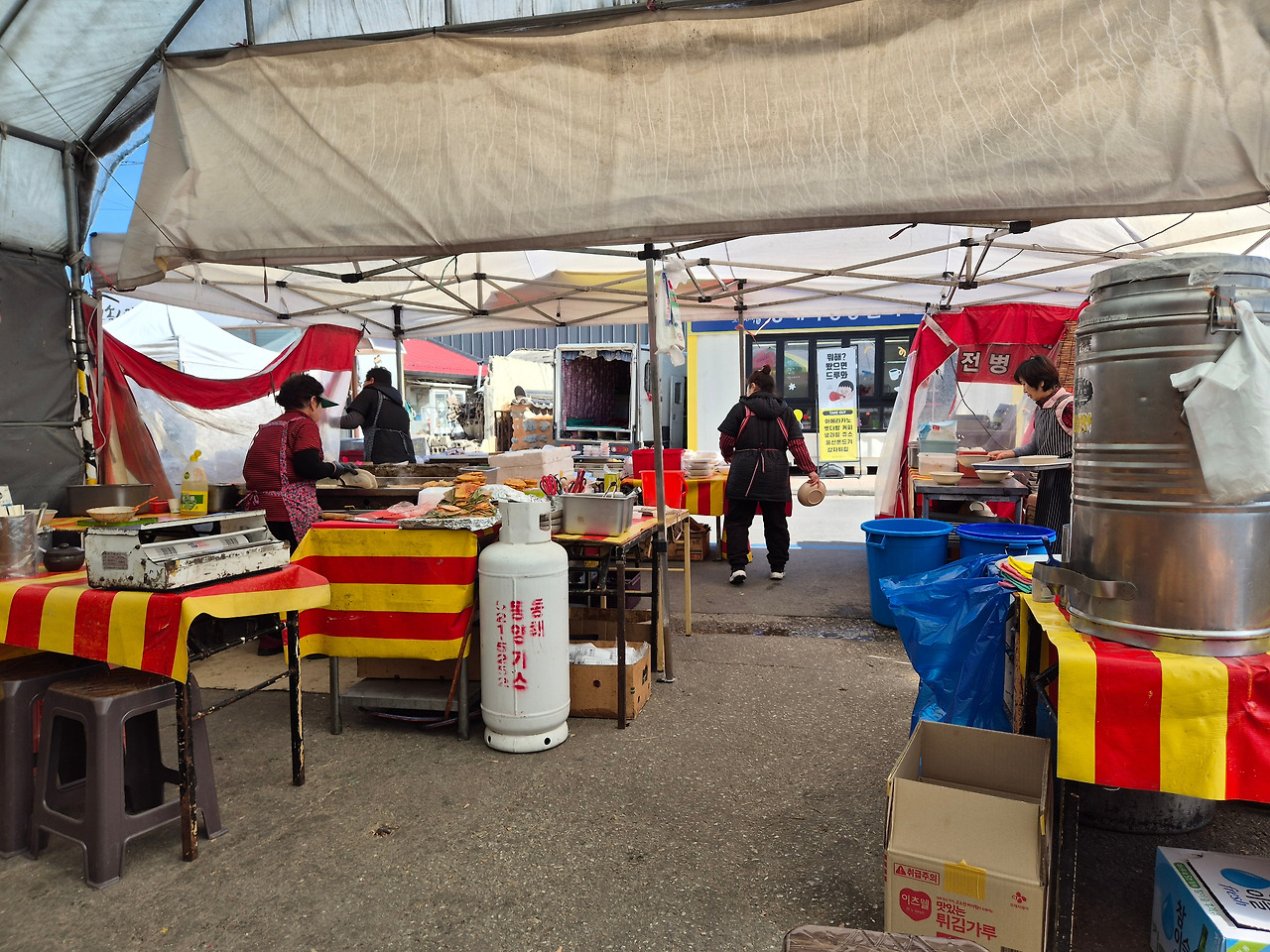 캐나다보다 오랜 역사를 가진, 정조 20년에 시작된 북평민속오일장의 초입은 이전에 보아왔던 시장과는 달리 비교적 조용하며 쓸쓸한 느낌까지 들었다. 인파랄 것이 없었던 한적한 시장은 빈대떡과 전병이 산처럼 쌓인 노점 앞에서 슬며시 활력을 내뿜었다. 아이는 고소한 기름 냄새에 슬쩍 눈꺼풀을 들어 올렸다.