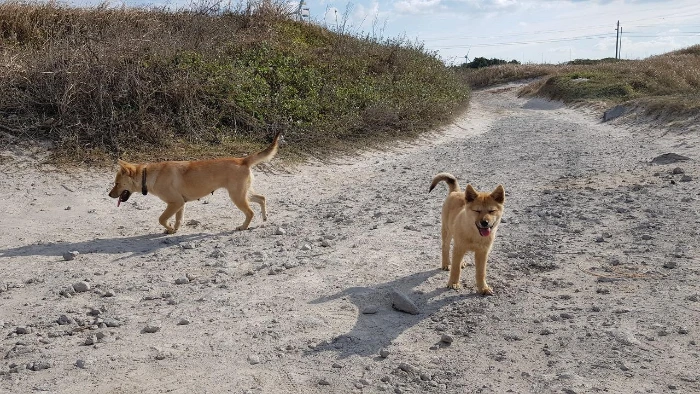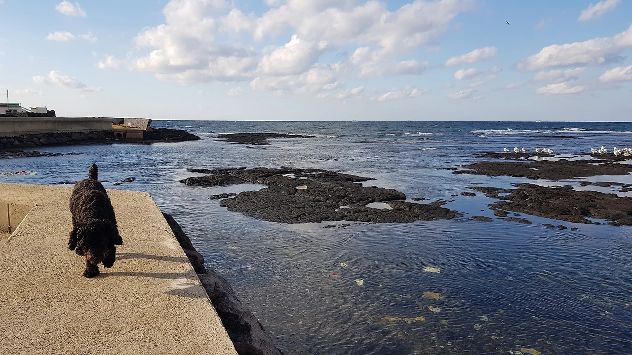 다시 올레길입니다. 사람보다 소와 말을 더 많이 만난 한 올레길에서 강아지 2마리를 만났습니다. 1살이나 됐을까요? 제 비상식량인 육포를 털어먹고 강아지들은 제 갈길을 떠났습니다. 처음에 올레길을 찾았을 때가 2012년도, 한창 올레 걷기 열풍이 불 때였습니다. 저때가 2017년쯤이었는데 이전과 달리 사람 한 명 마주치기가 힘들더군요. 외로웠던 여정에 잠시나마 웃을 수 있어서, 외롭지 않아서 즐거웠습니다. 아껴먹던 육포가 사라지긴 했지만요. 지금은 중년기에 접어든 건장한 성견이 되었겠네요. 강아지들도 오랜만에 만난 사람인지라 신이 났던 걸까요? 녀석들의 침으로 범벅이 된 손을 바닷물에 씻다가 나도 모르는 사이 웃음이 새어 나왔습니다.