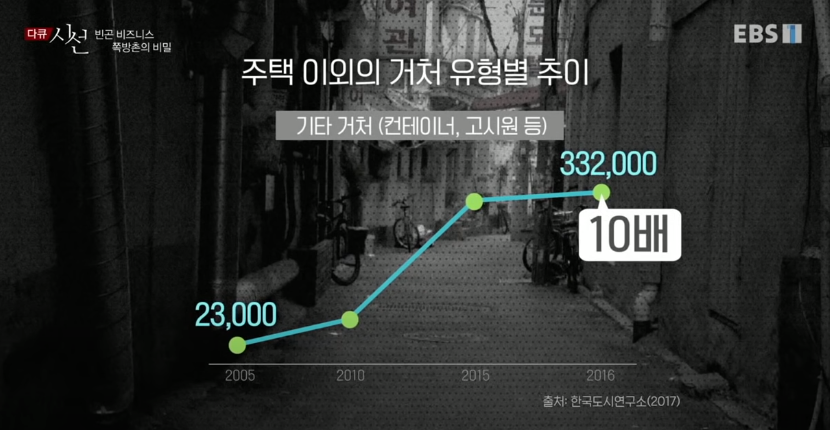 이전까지 고시원은 시험을 준비하는 학생들, 잠시 머물 곳이 필요한 직장인, 주머니 사정이 어려운 대학생들이 거주하는 곳이었죠. 물론 지금도 공부하는 학생들과 직장인들이 고시원을 찾아오지만, 시간이 흐를수록 고시원은 경제적으로 힘든 분들의 생활구역이 되고 있다고 합니다. 대표적인 고시원 밀집지역인 노량진과 신림동의 고시원은 해마다 큰 폭으로 감소하고 있는 반면에 도심지역 고시원에선 새로운 고객들이 꾸준히 늘어나고 있습니다. 끝을 모르고 오르는 집값, 감당할 수 없는 보증금과 월세. '주거비용이 저렴한 지역으로 떠나면 되지 않냐.'라고 생각하실지 모르겠지만, 본디 살고 있던 생활권을 벗어나 새로운 곳에 정착한다는 것이 말처럼 쉽지가 않습니다. 아래 통계를 살펴보면 고시원 거주자들이 계속해서 늘고 있다는 것을 확인할 수 있습니다.