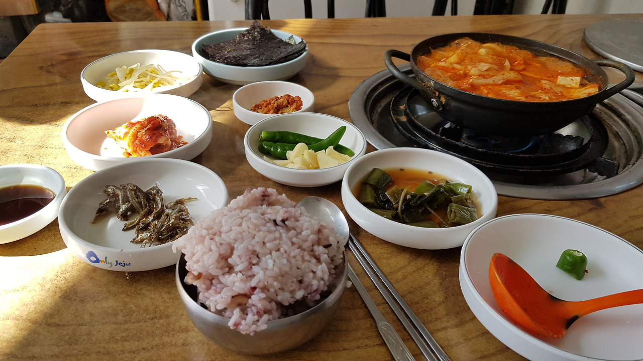 보름이 지나니 돈이 얼마 남지 않았고, 비행기표를 예매하고 그때까지만 버텨보기로 하였다. 지나고 보니 무슨 고생을 사서 한 것인지. 아무튼 공항을 가기 위해 제주시로 돌아와 마지막으로 밥 먹을 곳을 검색했다. 그런 심리 있지 않은가. 마지막 식사는 제대로 먹어야겠다는. 한국인은 밥이 전부다. 인터넷 검색을 통해 찾은 집들은 별로 구미가 당기지 않았다. 막연하게 제주도 일상음식을 먹고 싶었다. 눈에 보이는 슈퍼에 들어가 사장님께 무작정 여쭤봤다.