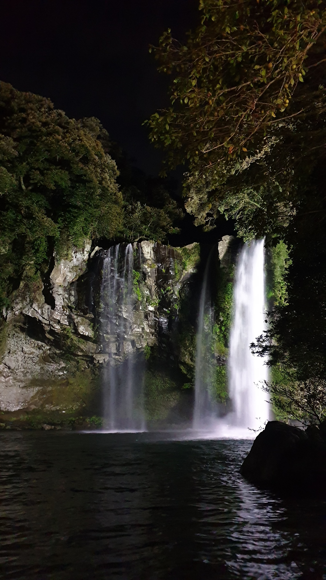 천제연 폭포가 웅장한 오르간이라면 천지연은 화려한 색소폰입니다. 물이 물로 떨어지고, 암벽과 공기 물의 기세에 깎여나갑니다. 아주 조금씩 말라가는 몸속의 수분처럼 폭포도 언젠가는 영원히 후퇴할 겁니다. 자연과 다른 시계를 사용하는 인간은 오래전부터 폭포를 하늘과 신, 영생과 승천의 장소로 여겼습니다. 폭포에서 뿌리와 열매의 냄새가 함께 느껴집니다. 남방의 폭포에서 북방의 건천이 떠오릅니다. 한라산을 둘러싼 *윌리스 고리는 서귀포를 조금 더 사랑하는 모양입니다.