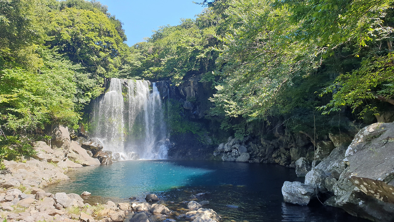 제주시는 푸른 사막입니다. 어디를 가든 물이 바싹 마른 하천을 아주 쉽게 찾아볼 수 있죠. 한라산에 엄청난 폭우가 쏟아질 때, 바로 이 돌과 먼지뿐인 건천을 통해 배수가 시작됩니다. 건천이 정비되기 전까지는 댐이 터지듯이 물이 쏟아졌고 마을과 사람을 함께 휩쓸었다고 합니다. 건천은 간헐적으로 작동하는 송수로이자 하수도입니다. 섬 남쪽 서귀포는 산 건너 북쪽 동네와는 조금 다릅니다. 폭포와 물길에 깎인 유려한 하천은 서귀포의 자랑입니다.