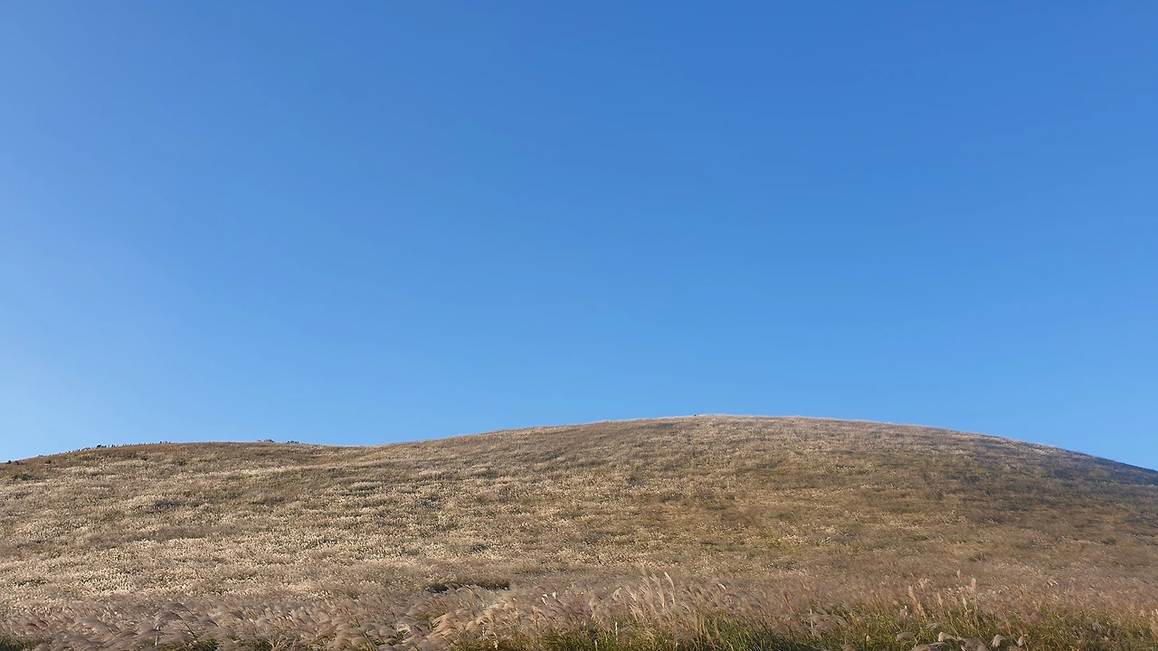 백신이 접종되고 방역수칙이 완화되자, 감염의 공포와 힐난의 두려움은 조금씩 옅어지기 시작했습니다. 한동안 텅 비어있던 새별오름 주차장은 관광버스와 렌터카로 가득 찼습니다. 멋지게 차려입은 여행객들이 구두를 꺾어 신고 오름을 오릅니다. 새별오름은 무성하게 자란 억새 덕분에 살이 통통하게 올랐습니다. 경사로에 진입하자 아이들의 입이 떡 벌어집니다. 새별오름 산책로는 정상을 향해 직진하는 고속도로에 가깝습니다.
