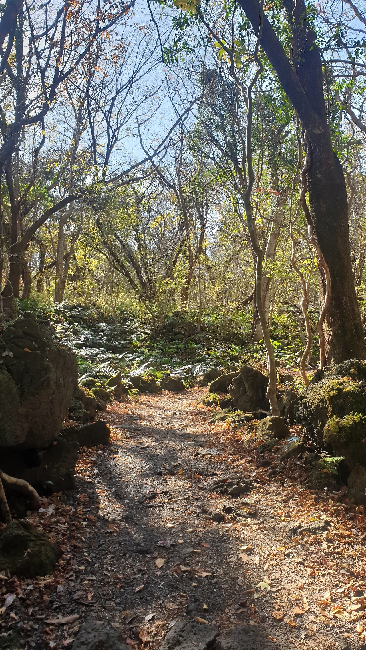 가이드, 고객센터, 숲 해설자 역할을 모두 담당하는 안전 지도사. 이 순간만큼은 같은 처지(=선택권이 없는)의 '여행자'가 되기로 결심합니다. 숲길을 걸으며 이야기를 조금 먼 곳에서 풀어냅니다. 곶자왈의 유래, 숲이 생성된 시기와 식생 정보는 인터넷에 흘러넘치도록 많습니다. 인생 경험이 갑절은 많은 지도사가 어린 학생들에게 여행지의 대화를 시도합니다.