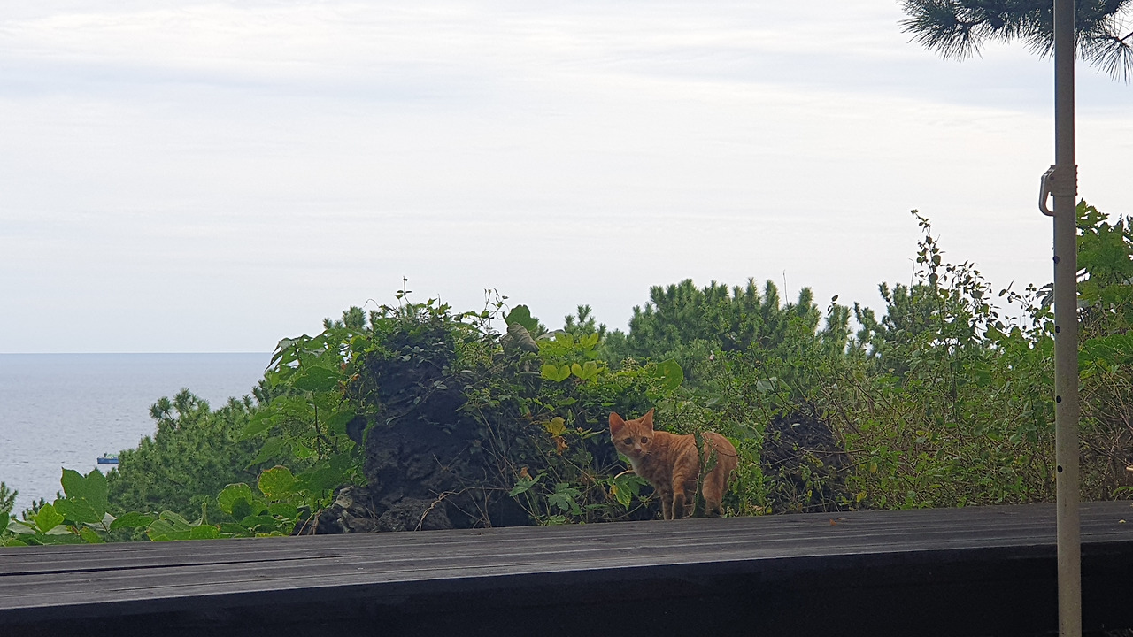 어쩌다 서귀포를 찾을 일이 생기면 선녀탕에 종종 들립니다. 사람이 없는 계절과 시간대의 선녀탕은 인적이 끊긴 여느 제주의 해안선과 다를 게 없죠. 카페는 모두 문을 닫았고, 좌판과 파라솔은 남김없이 사라졌습니다. 문을 닫은 카페 벤치는 새끼 고양이 한 마리가 차지했습니다. 한철 장사를 끝낸 수영장에는 파란 하늘만이 담겨있습니다. 소란스러움이 사라지자 바람과 파도의 소리가 들려오기 시작합니다.