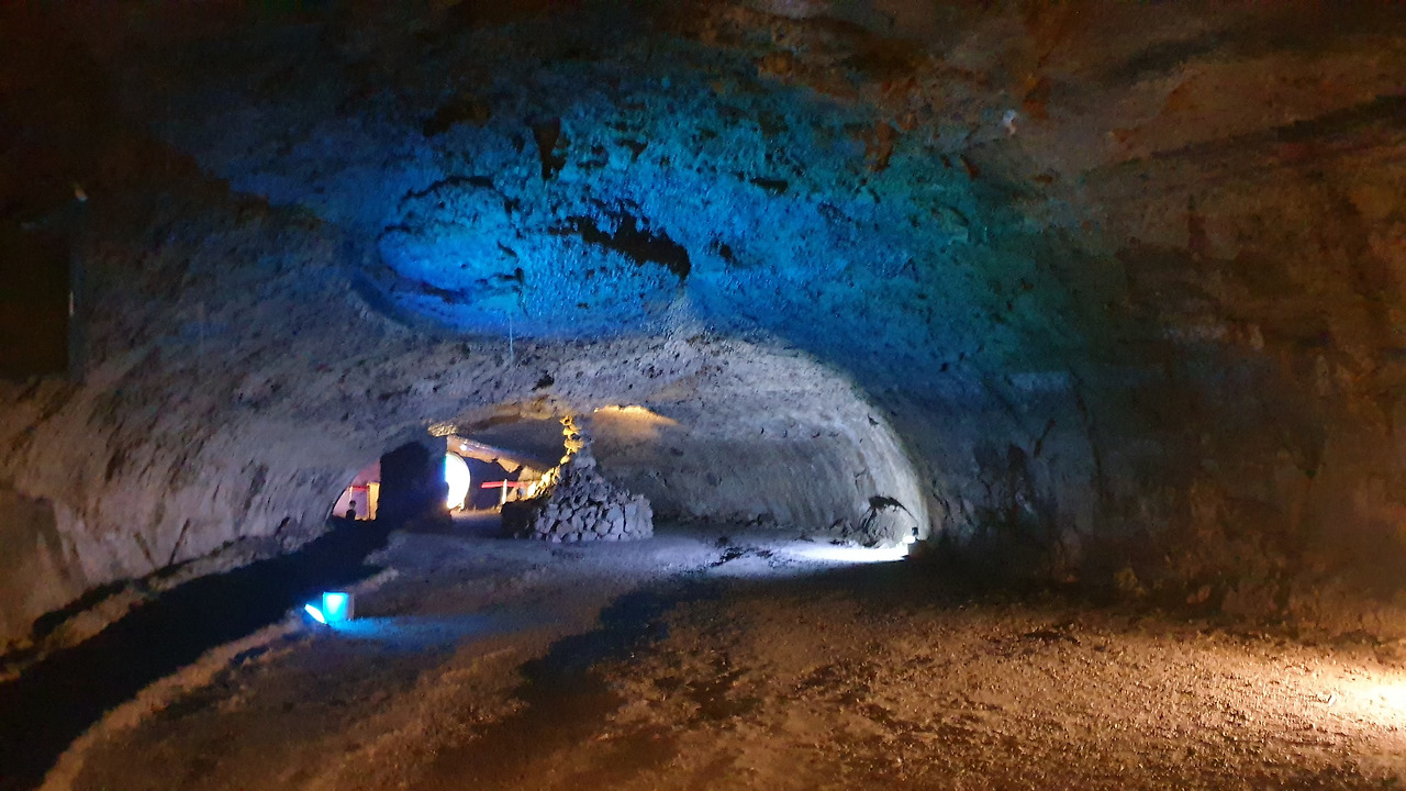 우리는 희미한 조명에 의지하며 동굴 깊숙한 곳으로 나아갔습니다. 물방울 소리가 멀리 퍼져나가고, 축축한 바람이 어디선가 불어옵니다. 허리를 숙이고 '머리 조심' 표지판을 지나칩니다. 인간의 목소리는 작아지고, 자연의 소리는 깊어집니다.
