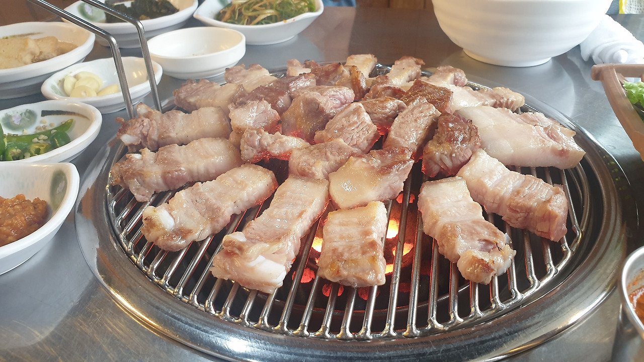 제주에 만연한 돈(豚)종 차별을 무안하게 만드는 존재는 바로 배고픈 10대입니다. 학교에서 10분 만에 밥을 해치우고 옆구리에 공을 끼고 운동장에 뛰어나가는 아이들이 불판 앞에서 1시간이 넘도록 일어나지 않습니다. 사장님은 점점 말수가 없어지고 인솔자는 다음 일정이 틀어질까 노심초사하지만, 고소한 돼지기름을 맡은 아이들은 가게 마당을 한 바퀴 가볍게 뛰고 다시 테이블에 앉습니다. 소화 끝! 어색한 미소를 띤 채 불판 사이를 걸어 다니다 보면(애들아 다 먹었니? 다음 일정이...) 저의 독촉을 막기 위해 쌈을 크게 싸서 입에 넣어주는(= 막아버리는) 학생들이 꼭 있습니다. 맛있습니다! 함께 고기를 뒤집으며 인솔자와 학생은 일정 지연의 공범이 됩니다. 다 먹고살자고 하는 일 아니겠습니까?