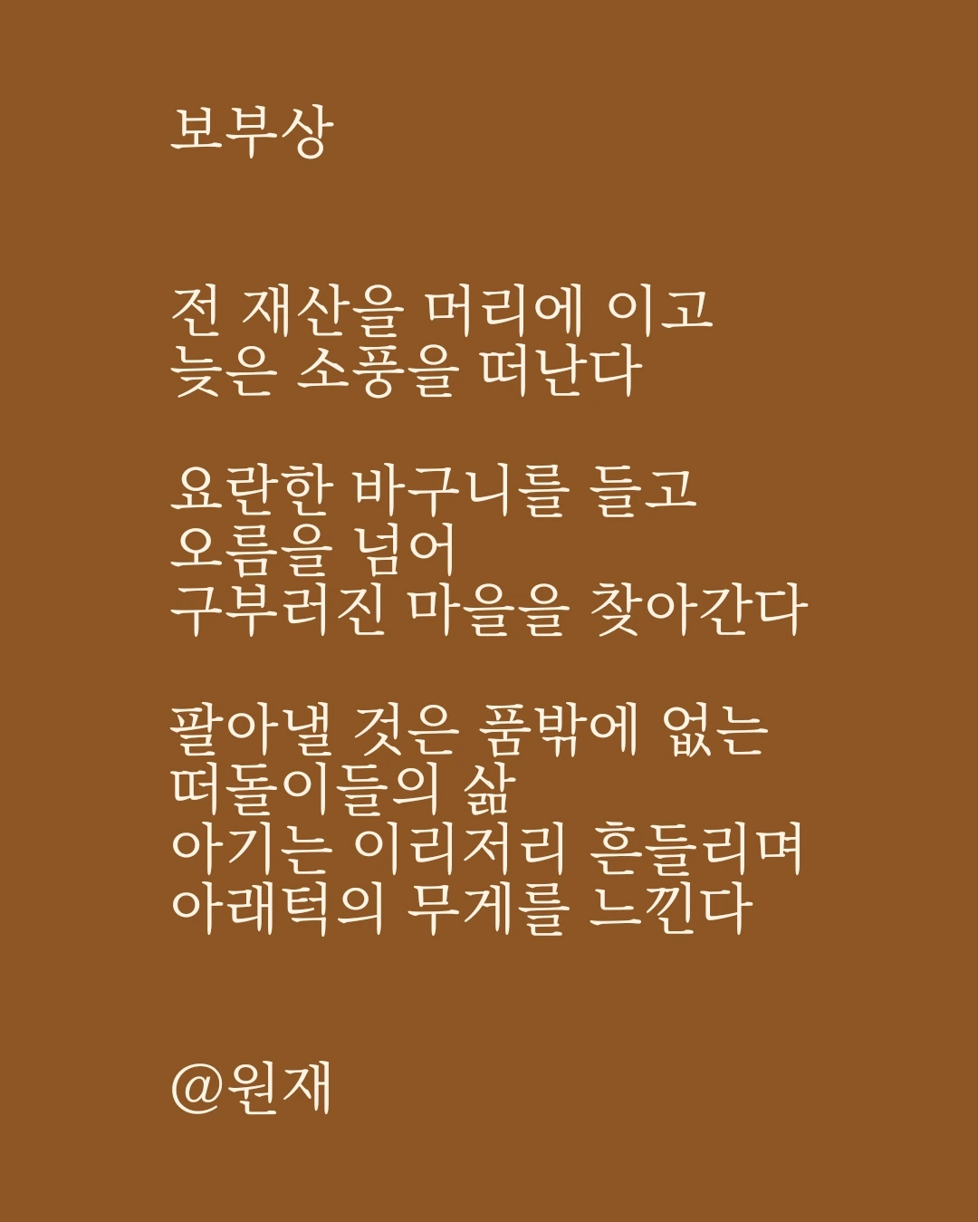 홀로 만들어내야 하는 삶이 아직은 애틋하다고 느껴지지 않는다. 어릴 때부터 무작정 걷기를 좋아했는데 습관이 인생이 되어버렸다. 무언갈 쌓아내지 못하고 끊임없이 걷고자 하는 아버지의 삶을 아기가 좋아할 수 있을까? 이곳저곳을 찾아가는 여정, 품 속에서 무작정 흔들리던 아기가 이제 턱을 스스로 가누고 작은 손으로 아비의 옷깃을 여며진다.