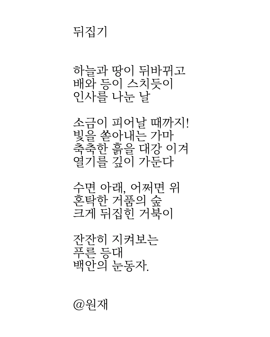 드디어 아기가 스스로 몸을 뒤집었다. 몸을 다시 뒤집기 위해 끙끙거리는 모습을 보며 사랑이 샘솟음을 느낀다. 눈을 뜨고 몸을 뒤집기만 해도 찬사를 받던 아이는 초등학교 문턱을 통과하는 순간 12년 동안 이어지는 지독한 정량 평가의 압박에 시달리게 될 것이다. 아이는 뒤집히고 싶지 않을 때 삶이 고꾸라지는 경험을 반드시 하게 될 것이다. 나는 어떤 표정으로 아이의 슬픈 눈동자를 바라보고 있을까. 주름이 늘었을 두 손에 무엇을 남겨놓아야 할까?