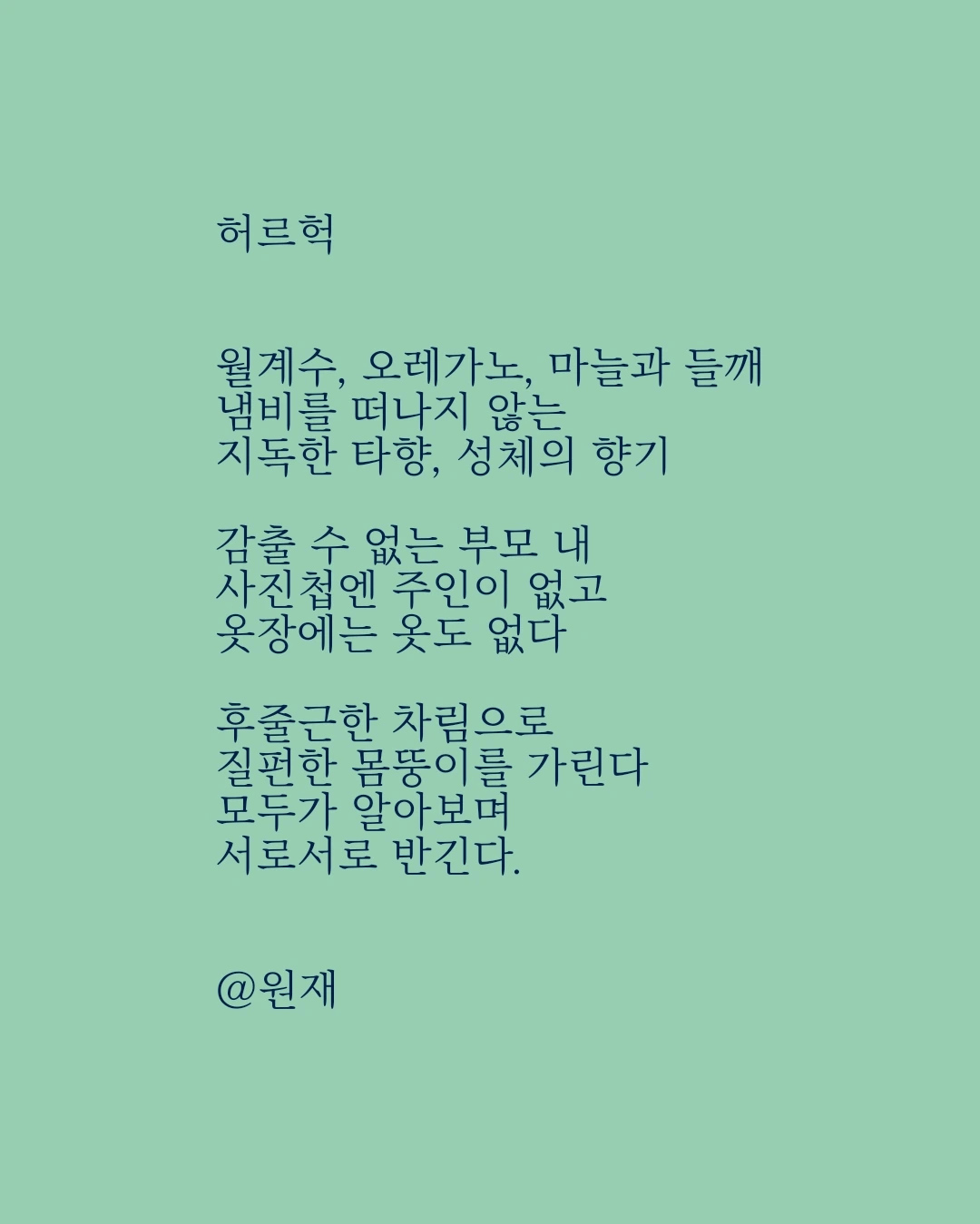 아기 엄마에게 물었다. "우리에게 무엇이 사라졌을까?" 아기 엄마는 "불행"이라고 답했다. 우리는 이전보다 더 헐벗었지만 서로로 인해 더욱 따듯해졌다.