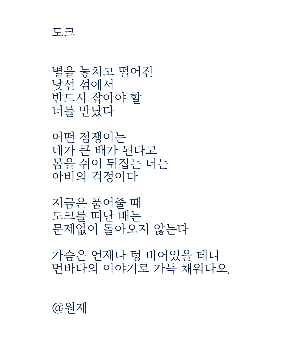 점과 사주를 믿지는 않지만 어떻게 좋은 기회가 생겨 아이의 삶에 대해서 물어보았다. 큰 배. 큰 사람이 되어 넓은 세계로 떠나는 삶은 모두가 바라는 길이건만, 이를 듣는 부모의 마음은 심란하기 그지없다. 나 또한 이전의 세상을 버리고 바다를 건너 제주도에 도착했다. 아기는 작은 아빠보다 조금 더 멀리 나가고 싶은 모양이다.