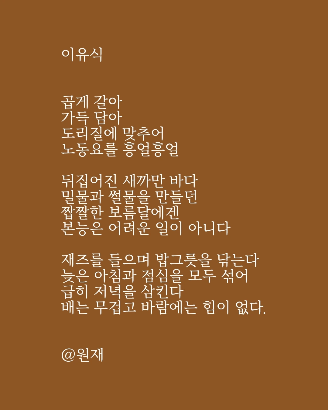 '논에 물이 들어가는 것보다, 자식의 입에 밥이 들어가는 것이 더욱 기쁘다'라는 옛말이 있다. 논과 자식을 배불리 고자 하는 오래된 부모의 마음에도 자신의 끼니에 대한 걱정은 보이지 않는다. 아이가 잘 먹어서 기쁘다. 그냥 기쁘다.