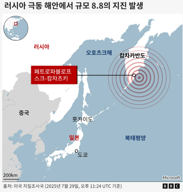 러시아 캄차카 반도 인근 규모 8.7 지진 발생으로 인한