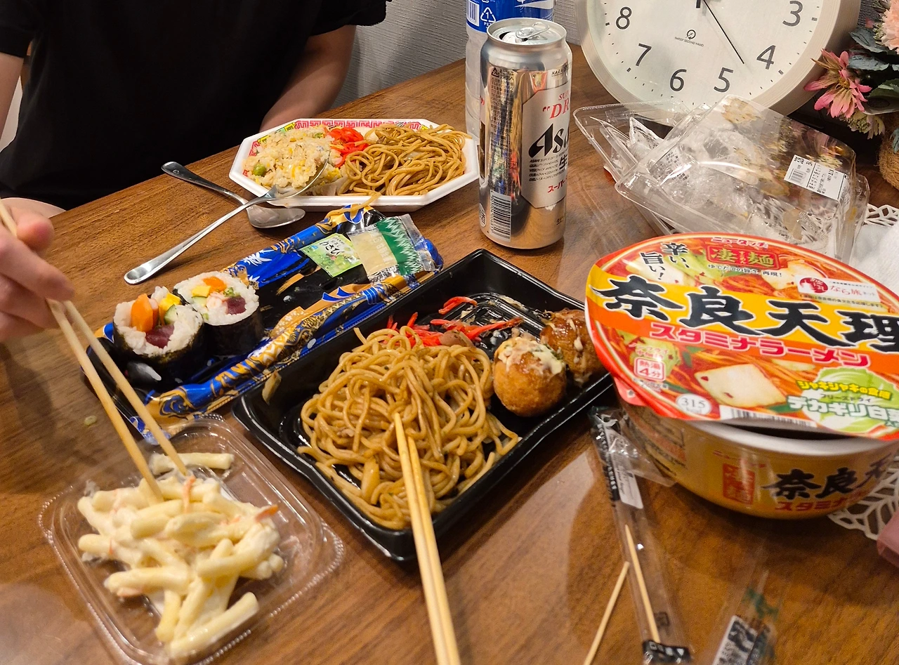 해가 저물어가는 저녁 시간대에 도착한 오사카 시내는 예상대로 더웠으나 제주처럼 습하지는 않았다. 도저히 식당까지 갈 에너지가 남지 않아 우리는 괴상한 홍보 노래가 끊임없이 흘러나오는 <슈퍼 타마데>에 들렸다. 오사카에만 있는 저가형 슈퍼마켓인데 24시간 운영이 원칙인지라 늦은 허기를 달래기에는 이만한 장소가 없다.