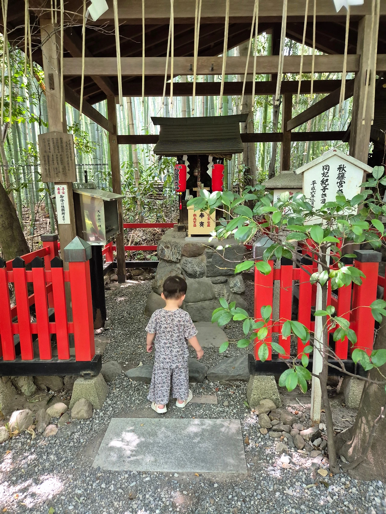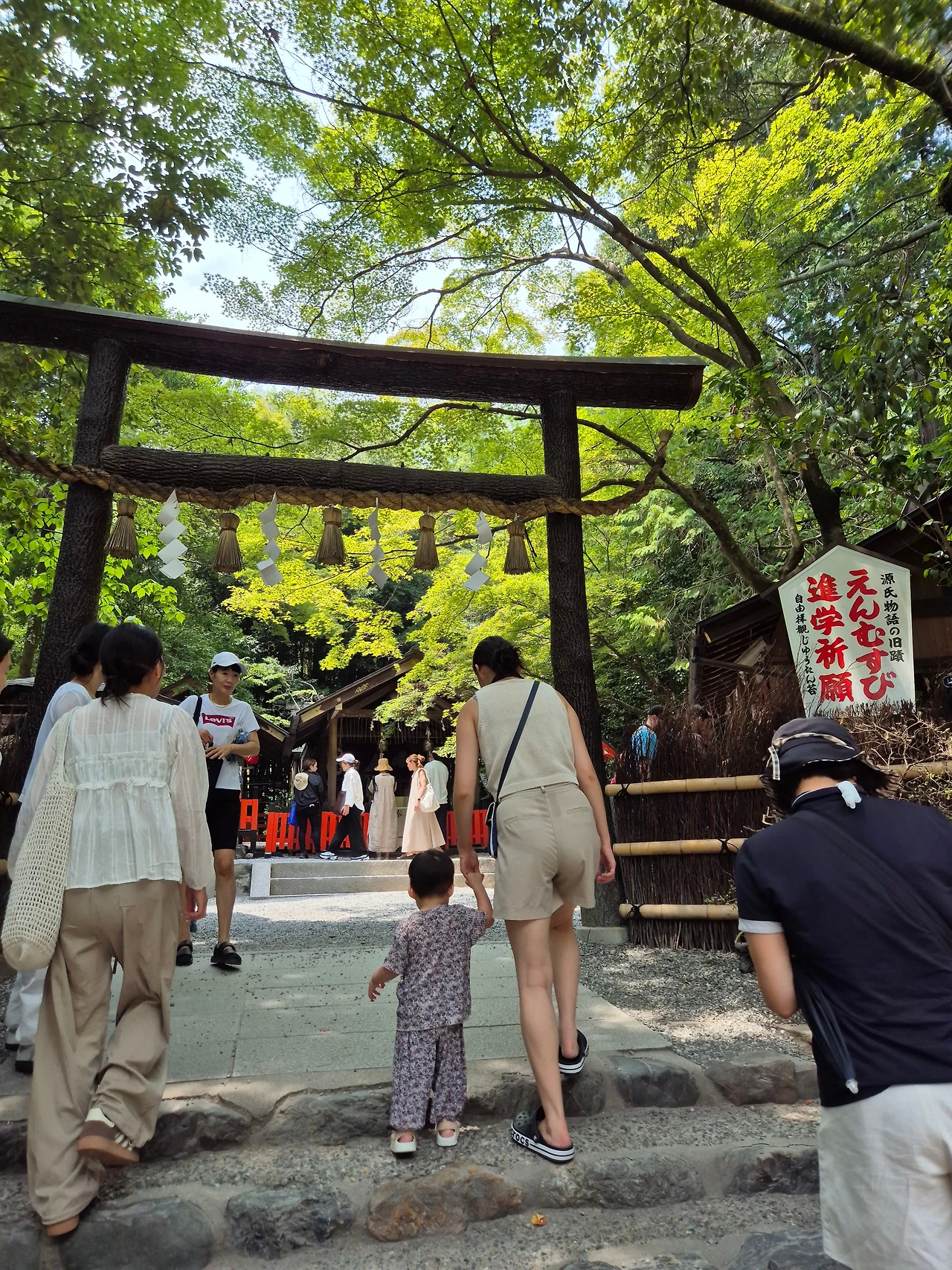 대나무는 영양분이 많은 흙과 많은 양의 물을 필요로 하는데 이곳에 보와 용수로를 개설하여 풍요의 땅으로 만든 이들은 신라 출신의 도래인인 하타 씨였다. 천황은 풍요의 땅으로 변모한 아라시야마에 벚나무를 심으라 명령했고, 봄이 되면 교토의 시민들이 벚꽃 아래에서 꽃놀이를 하기 위하여 이곳을 찾아온다. 치쿠린의 초입에 자리 잡은 노노미야 신사는 이 시기에 방문한 여고생과 학부모들이 반드시 들리는 명소이다. 검은색 나무 도리이 옆에 세워진 팻말에는 '인연 맺기' 그리고 '학업성취'라고 쓰여있는데 첫사랑과 대학입시에 약빨이 좋다나.... 노노미야 신사는 세계 최초의 고전소설이라고 평가받는 <겐지모노가타리>의 배경이 되기도 한 유서 깊은 장소인데, 아이러니하게도 소설 속 주인공인 겐지는 이곳에서 연인과 이별을 맞이하게 된다.