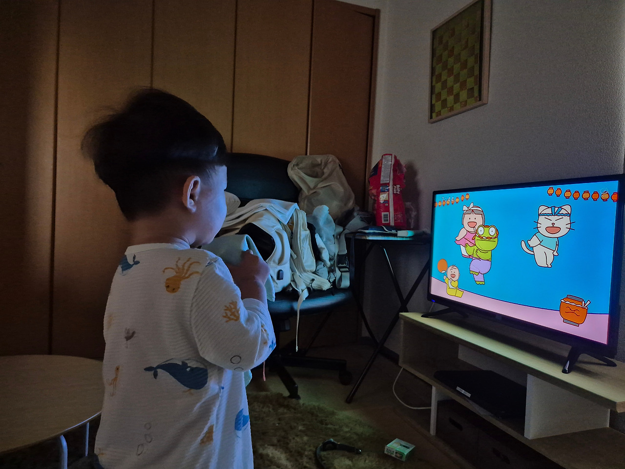 2살 아이는 언어의 장벽이랄 게 없는지라 일본 애니메이션을 아무런 어려움 없이 즐길 수 있었다. 저녁을 먹고 배를 뚱뚱하게 불린 아이는 침대 끄트머리에 걸터앉아 <명탕점 코난>에 빠져들었고, 아침에는 <시나푸슈>를 보며 일본식-영어 발음을 익혔다. 0~2세 영유아를 타깃으로 만든 TV 프로그램인 <시나푸슈>는 아침 7시 30분에 방영하는데 두 아이의 엄마인 이이다 카나코가 육아지원센터를 방문하는 엄마들의 고민을 경청하는 과정에서 시작되었다고 한다.