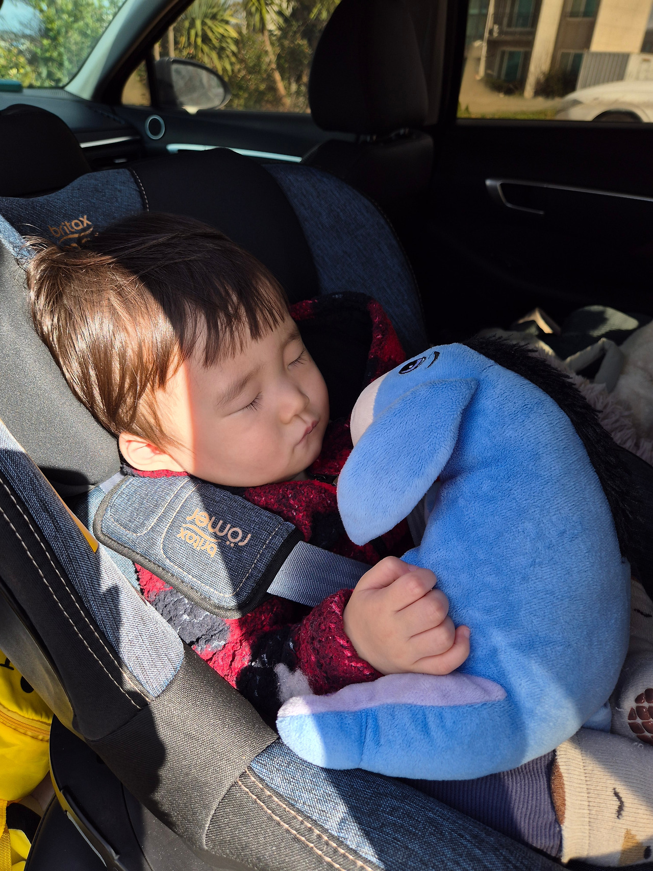 카시트에 갇힌, 엄마와 아빠의 품이 그리운 아이는 잠시 의미 없는 저항을 해보지만 곧 소용없는 행동임을 깨닫고 부모의 대체제를 요구한다. "이요, 이요!". 아이는 흔들리는 차에서 이요르를 꼭 끌어안고 쫑알거리다 쿨쿨- 잠에 빠져든다. 목적지에 도착하여 뒷좌석 문을 열 때까지, 잠든 아이는 인형을 손에 놓지 않았고 이요르는 빤히 아이를 바라보고 있었다. 아이는 인형에게서 안정감과 친밀감을 발견하고 부모 외의 타자와 친밀한 관계를 맺는 연습을 시작한다.