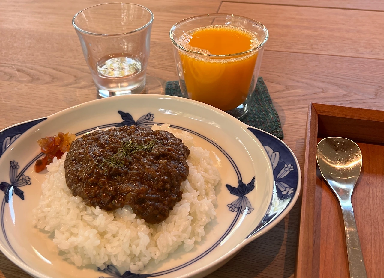 저는 살짝 매콤한 카레 덮밥 메뉴를 시켜서 오렌지(?) 주스와 함께 야무지게 먹었는데요. 이곳은 꼭 추천드리고 싶네요. 내부 인테리어부터 정겨웠던 직원분, 그리고 맛있는 음식까지. 혼자 왔음에도 부담 없이 공간 자체를 즐길 수 있었어요. 직원 분께 감사한 마음에 일본어 한마디를 달달 외워 나오면서 자신 있게 외치고 왔답니다. "고치소우사마데시다! (잘 먹었습니다)"
