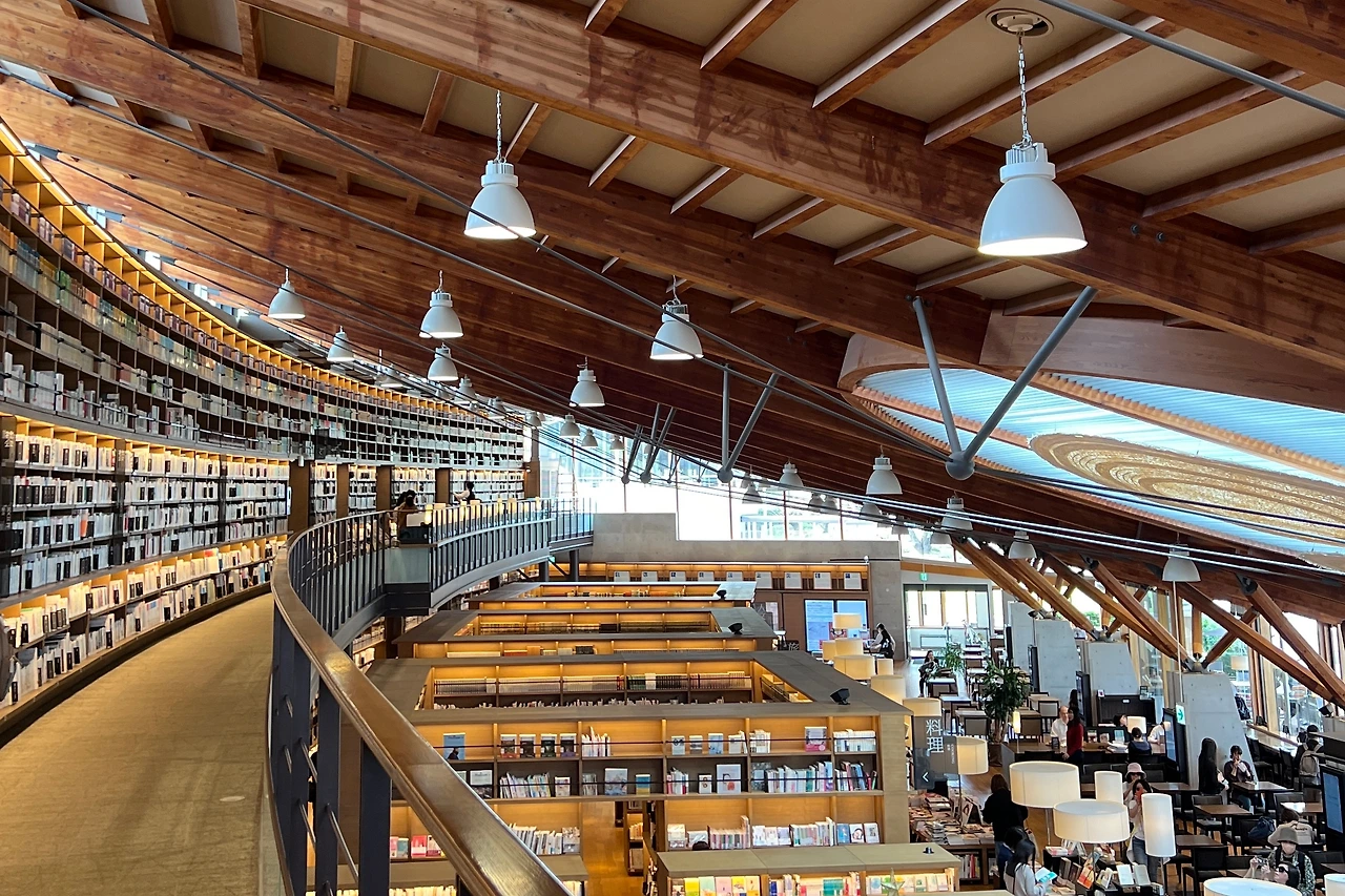 우리나라의 별마당 도서관의 모티브가 되기도 한 도서관. 그래서 그런지 더 궁금했던 공간입니다. 내부엔 여러 분야의 서적이 가득 차있고, 스타벅스도 함께 있어 커피와 함께 공간을 즐기는 분들도 많았어요. 저 역시 말차라떼 하나를 주문해 바깥 테라스에서 가져온 책 한 권을 평화로이 읽었답니다. 사람은 꽤 많았지만, 서로 방해가 되지 않으려는 마음들이 보여 괜스레 기분이 좋아졌던 곳.