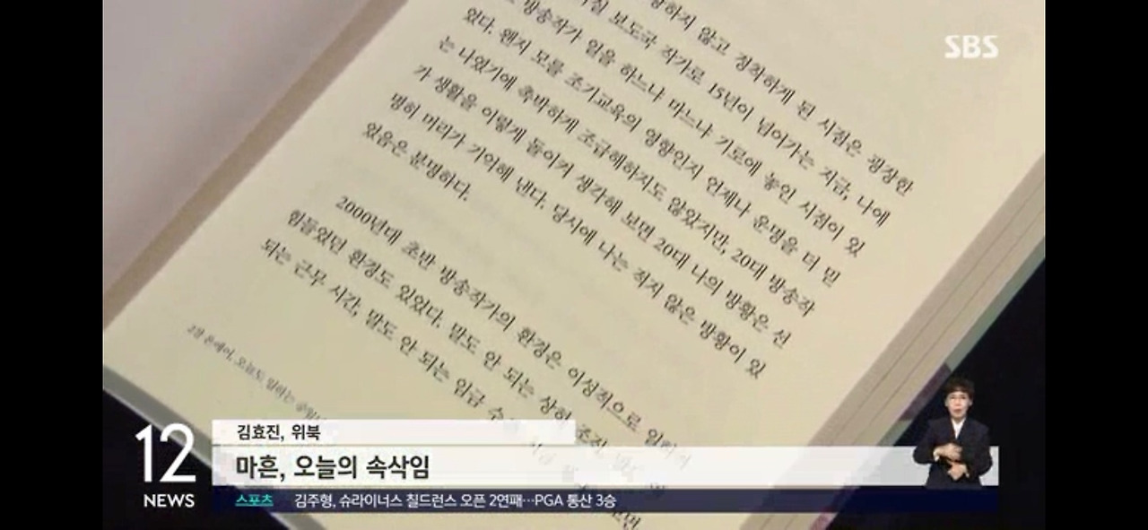 < SBS 12 뉴스 문화 현장 속 '마흔, 오늘의 속삭임'>