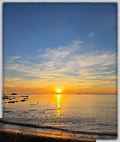 다음날 새벽 5시, 휴대폰 알람 소리에 잠이 깨었다. 알람을 끄고 한 20분 정도 고민을 했다. 어젯밤에 밀어 넣었던 알콜로 약간의 숙취가 느껴졌기 때문이다. (다행히 속이 안 좋은 정도로 과하게 마신 건 아니었음 ㅎㅎ) 하지만 지금 일어나지 않으면 후회할 것 같아 억지로 몸을 일으켜 거실로 나갔다. 거실엔 벌써 일어나신 아버님 곁에 남편이 코를 골며 자고 있었다. 해가 떴나 싶어 거실 베란다 창문을 바라봤는데, 세상에!! 붓으로 주황색 물감을 칠해 놓은 것 같은 멋진 오션뷰에 정신이 번쩍 들었다. 지금이다! 지금 우리는 나가야 한다!! 나는 남편을 흔들어 깨워 후다닥 러닝 준비를 하고 밖으로 나갔다. 서로의 퉁퉁 부은 얼굴은 너무 부끄러웠지만 우리는 숙소 앞 해수욕장으로 가 보았다. 거기서부터 둘만의 '해장 러닝'을 시작했다.