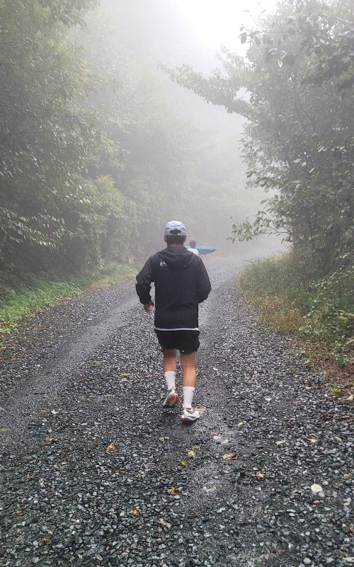 그리고 날씨 때문에 등산로 전체에는 안개가 자욱했다. 그래서 등산로 옆으로 보여야 하는 경치는 물론, 우리 앞으로 주로가 어떻게 펼쳐져 있는지도 보이지 않았다. 겨우 내 앞 2~3m 정도까지만 바닥이 보일 뿐이었다. 우리는 그야말로 러닝을 하기에는 정말 악조건(업힐, 비바람, 안개) 속에서 달리고 있었는데, 언제부터인가 웃음이 나오는 건 왜일까? 특히 남편은 두 팔을 벌리고 하늘을 올려다보며 하하하 웃으며 달리기도 했다. 나는 자욱한 안개 속을 계속 헤쳐나가서인지 몰라도, 뭔가 몽환적인 느낌이 들었다. 지금 달리고 있는 이곳이 현실인지 꿈속을 달리는 것인지 헛갈린다고 해야 하나? ㅎㅎ 그리고 오랜만에 비를 온몸으로 맞으며 달리다 보니 어린 시절로 돌아간 기분도 들었다. 어른인 나는 비 오는 날 옷이며 신발이며 젖는 걸 싫어하지만, 그때의 나는 친구들과 비를 맞고 뛰어노는 게 좋았다. 마치 물놀이를 하는 것 같아서 그랬던 것 같다. 지금은 이렇게 빗 속에서 놀아도 엄마의 잔소리를 듣지 않아도 된다. (그냥 내가 빨면 되기에 ㅎㅎ)