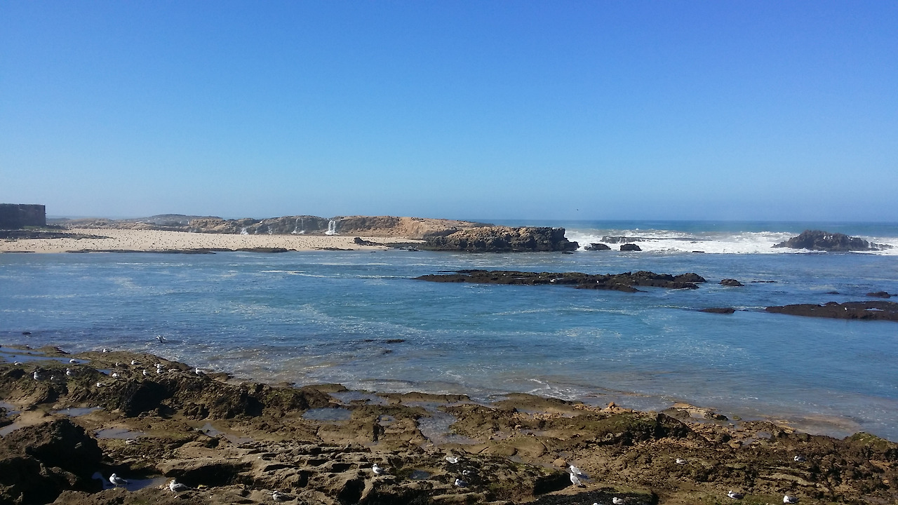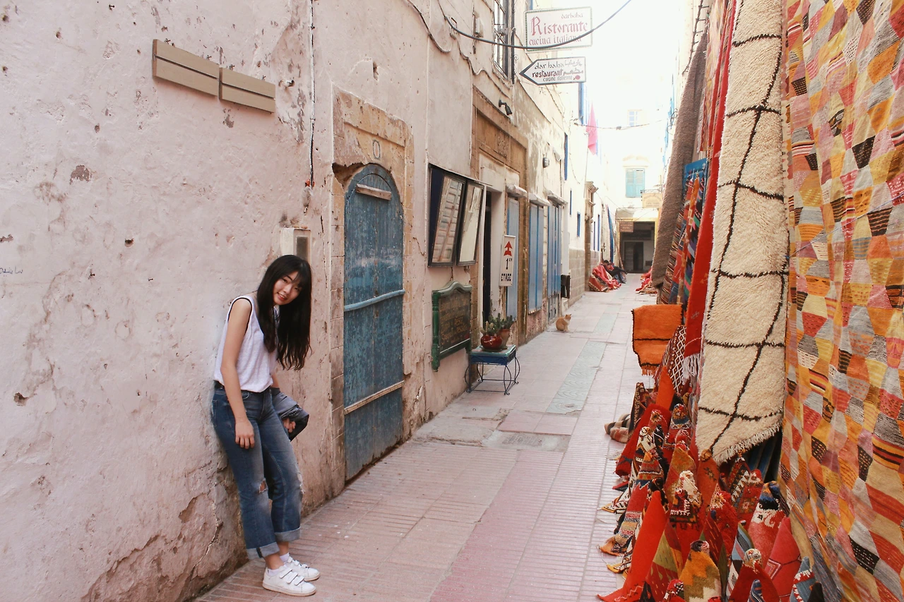 그래서 에사우이라를 갔을 때 그 평화로움에 놀랐다. 우리가 길을 건널 때 우리를 보고 웃으며 멈춰주는 차들도 있었고, 메디나에서 물건을 파는 사람들이 마라케시처럼 처음부터 어처구니 없이 높은 가격을 부르지도 않았다. 길에서 우리에게 니하오나 곤니찌와를 던지는 사람들의 수도 확연히 줄었다. 무엇보다도 도시 자체에서 풍겨오는 분위기가 좋았다. 짭조름한 바다 냄새, 구름 한 점 없는 하늘 색과 어울리는 하얗고 파란 건물들. 에사우이라를 조금 거닐고 우리는 카사블랑카 가는 걸 포기하고 여기서 하루 더 묵기로 결정했다.