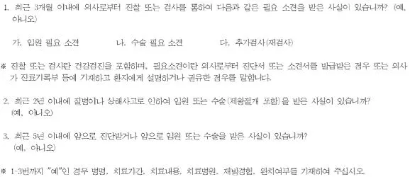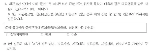 아래는 유병력자 상품 질문서 중 병력 고지 부분이다.