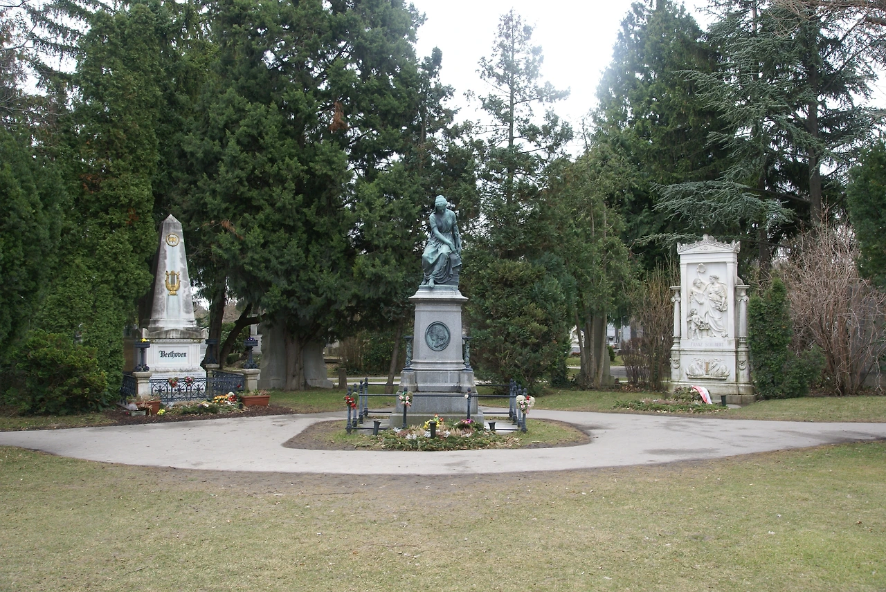 빈 중앙묘지는 음악가들의 성지라 할만하다. 모차르트의 가묘, 베토벤, 슈베르트, 요한슈트라우스 1,2세, 브람스, 체르니, 그리고 살리에리까지. 그중에서도 32A구역에는 모차르트, 베토벤, 슈베르트, 요한슈트라우스 부자, 브람스가 한데 모여있다. 빈 시내에서 트램으로 30분이 넘게 걸리는 이곳을 찾는 관광객도 많지는 않지만, 그래도 이곳에서 가장 인기 있는 음악가들은 한 군데에 삼총사처럼 모여있는 모차르트, 베토벤, 슈베르트다. 이들의 무덤이 찾기도 쉬워서인지, 애정 어린 꽃다발들도 가득했다.