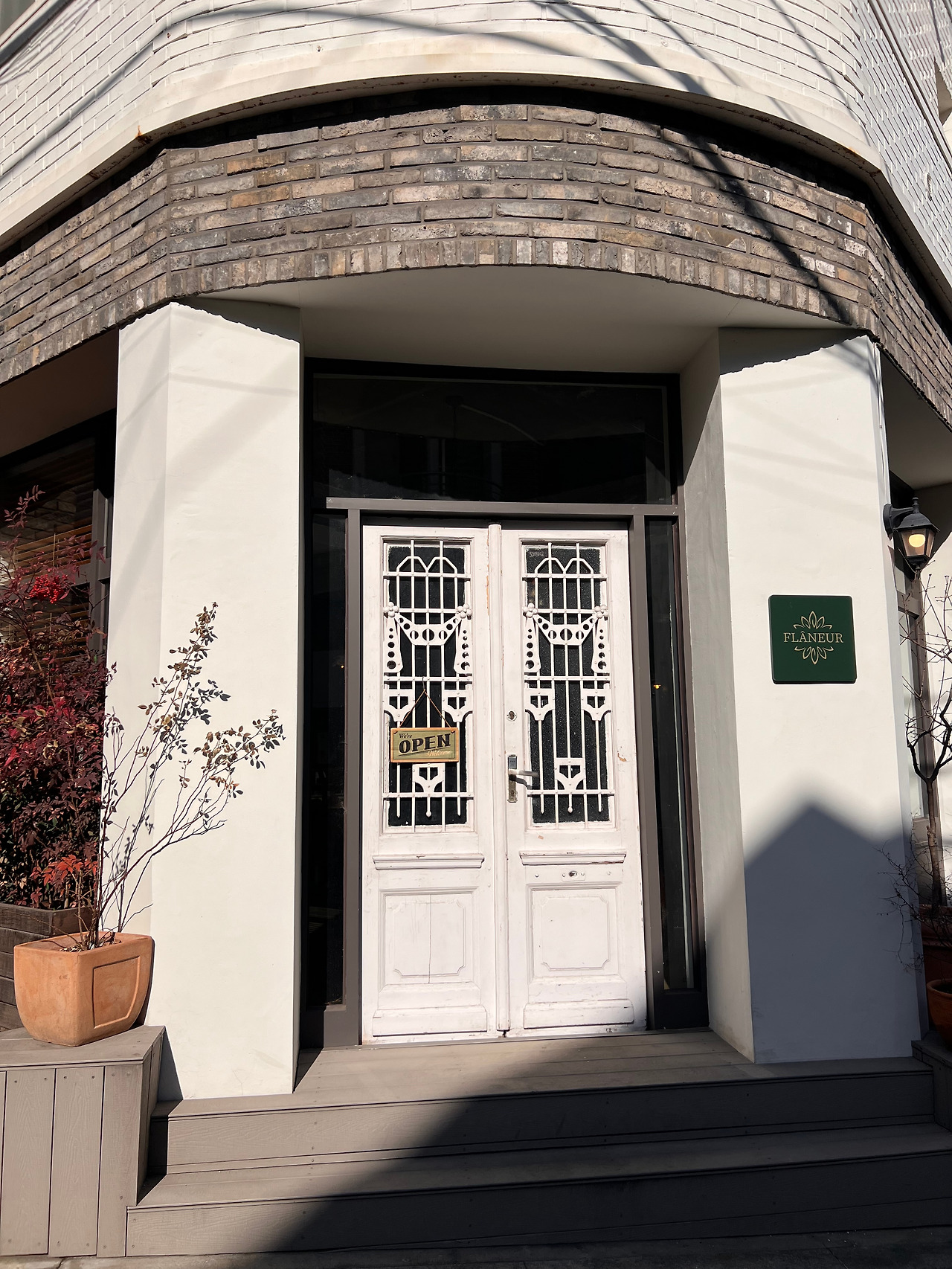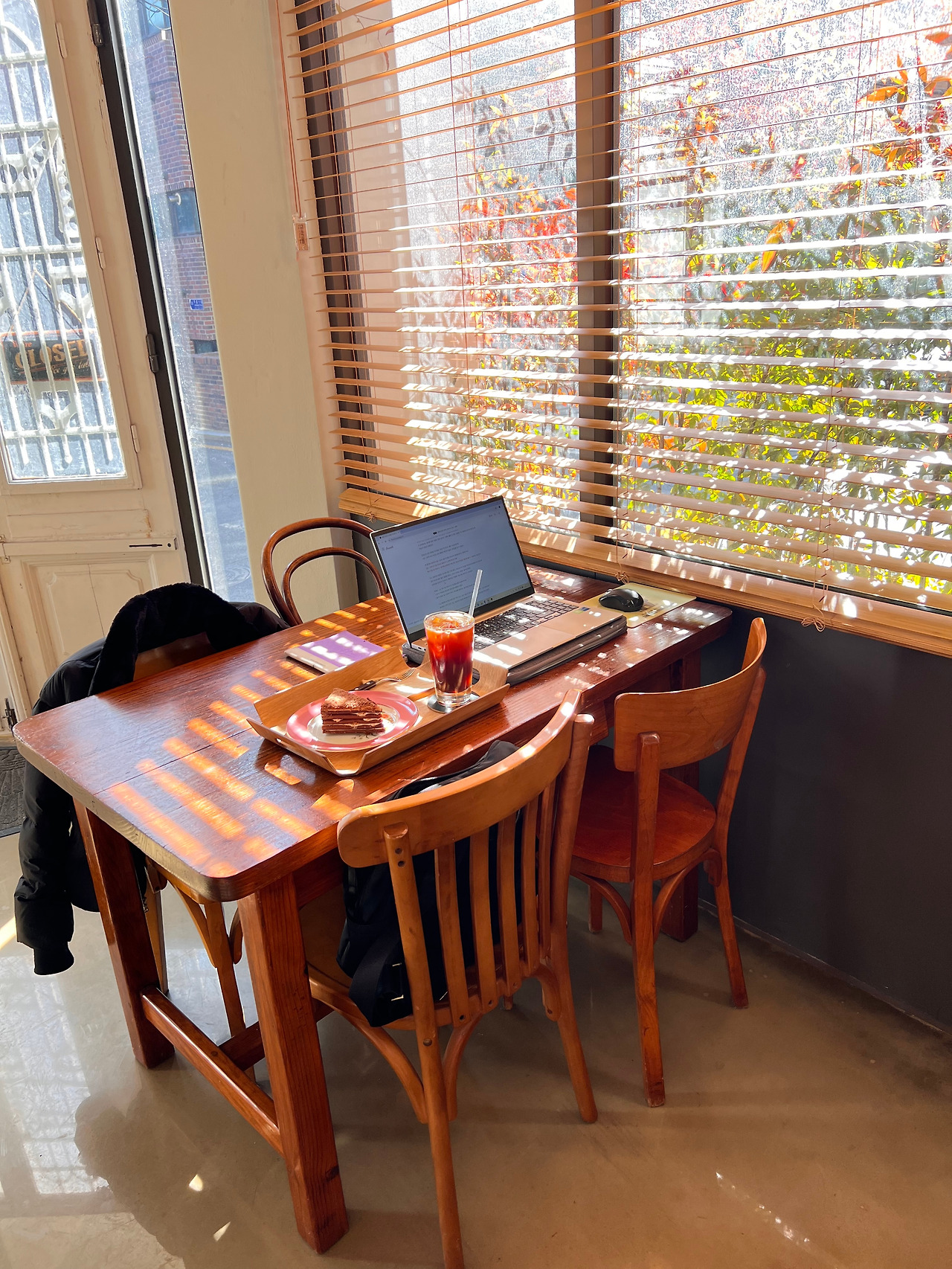 평일 오후, 골목길에 있는 한가로운 카페에서
