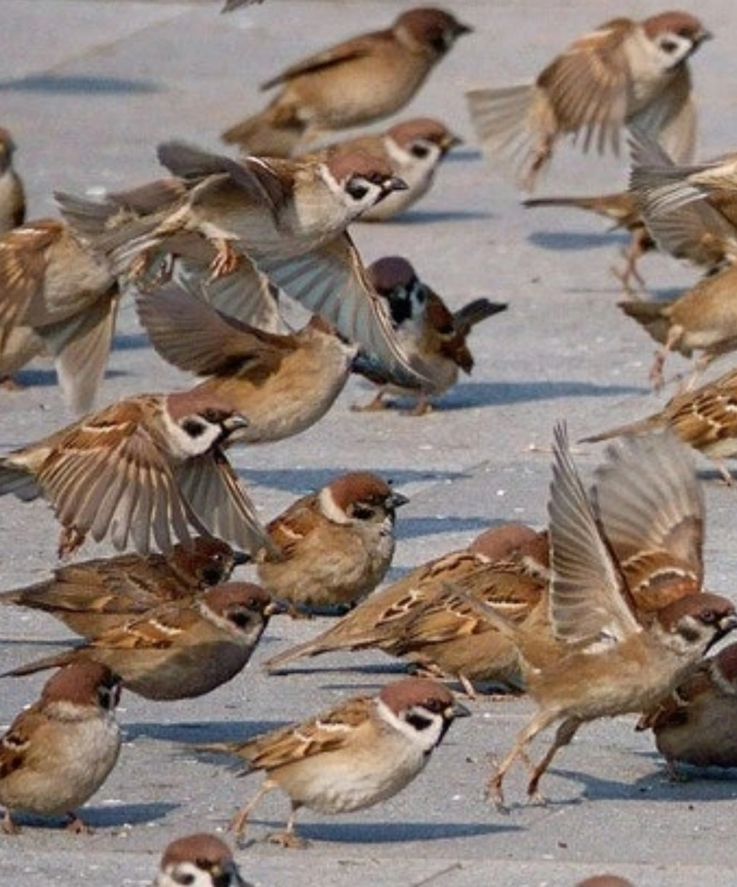 그들이 고함을 지르거나 장대를 휘저으며 참새떼들을 어느 특정한 곳으로 몰아갈 때는 가급적 높이 멀리 도망가는 게 상책인데, 참새들이 즐겨 훔쳐먹는 곡식이 사람들 주변에 많으니 어쩔 수없이 마을을 기웃거린다.