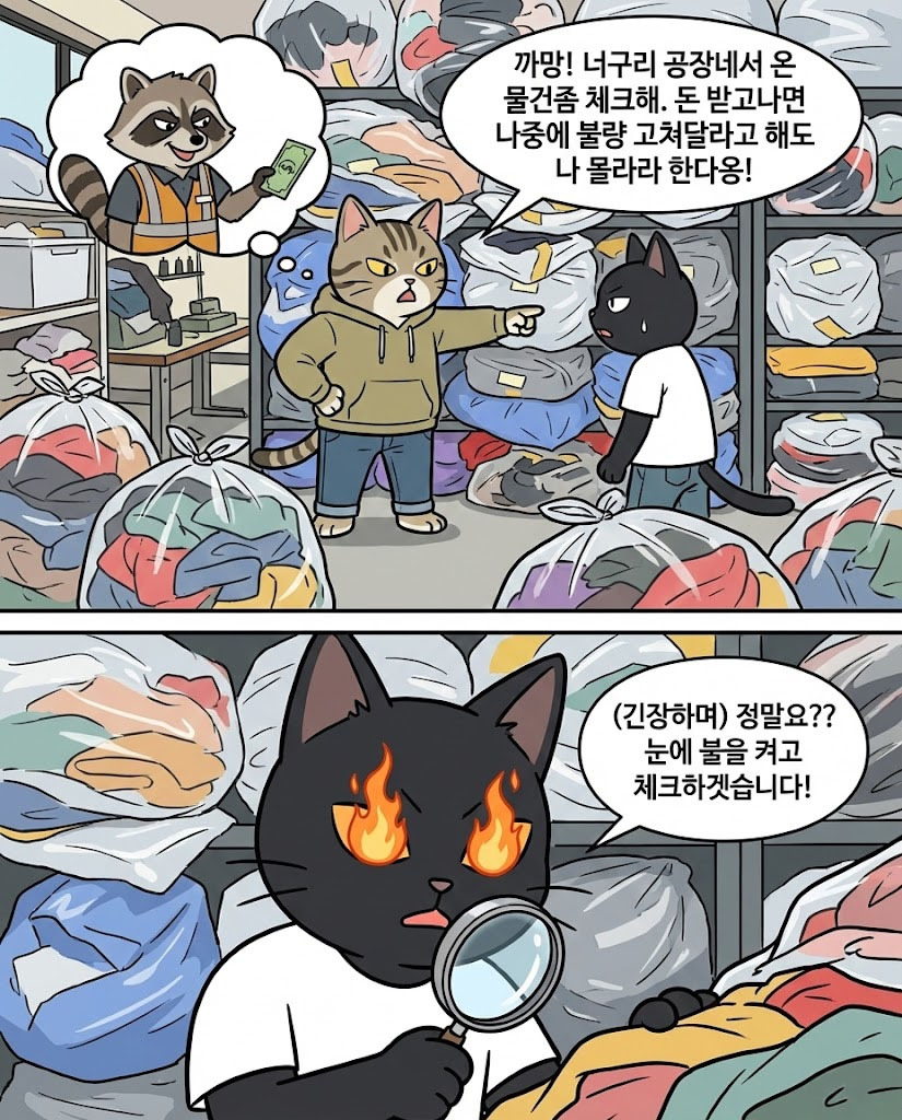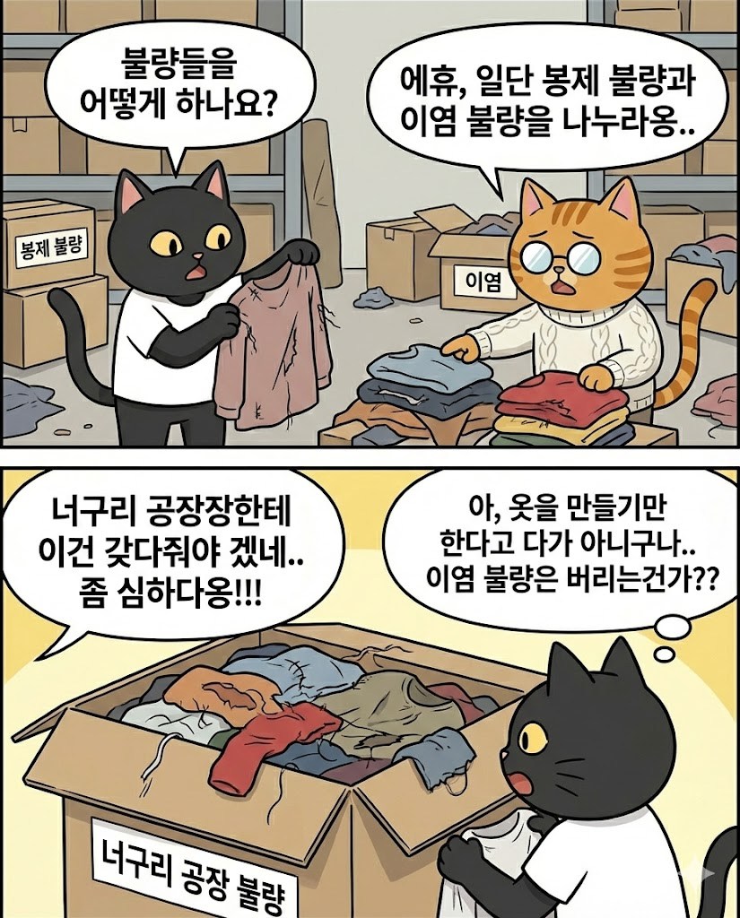 생산 지옥과 불량, 금방 옷더미가 쌓인다옹..