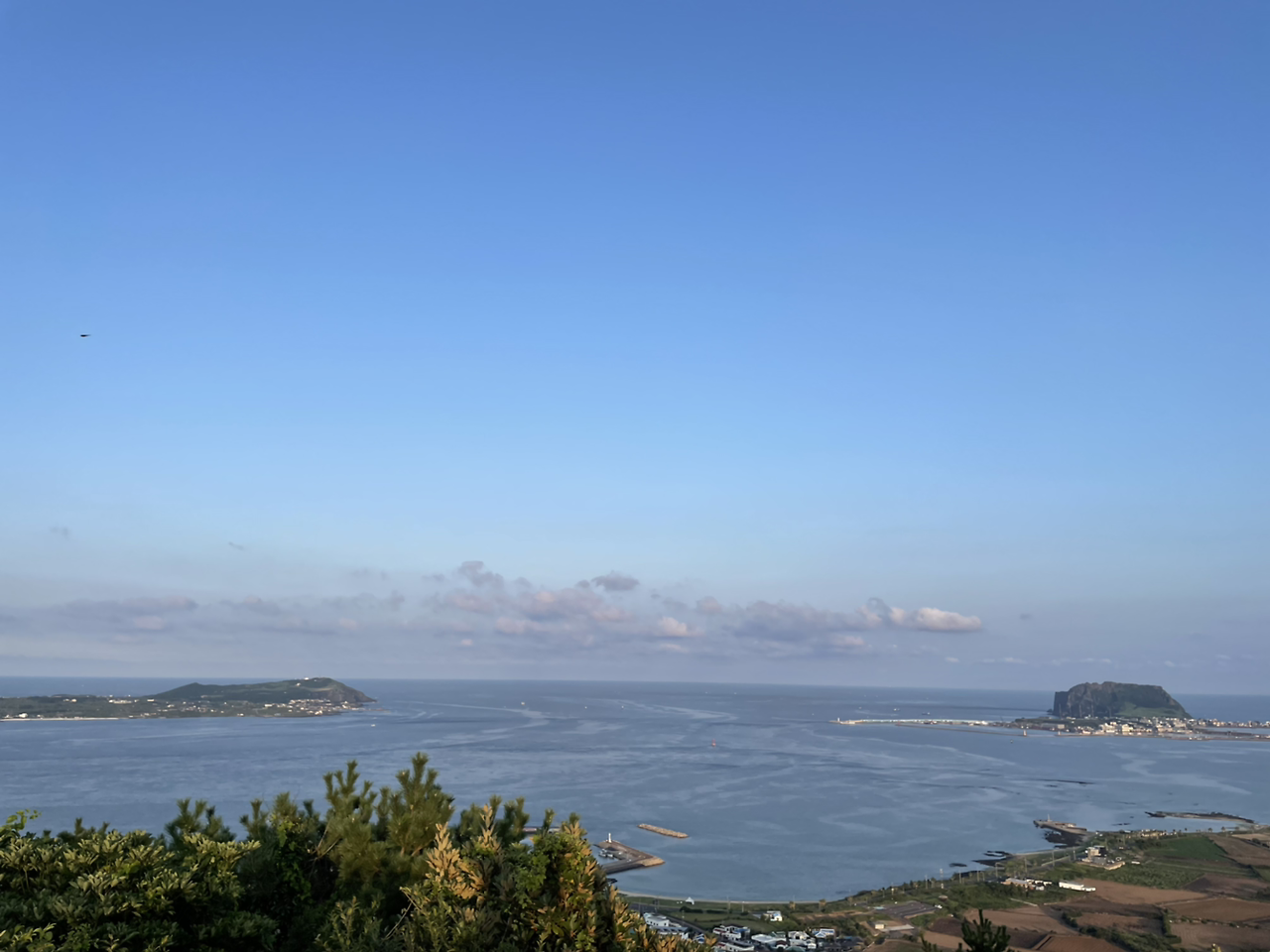 이 근처에서 오후에도 가기 좋은 명소 몇 곳 추천하자면 첫 번째로 큰엉해안경승지가 아닐까 싶다. 숙소에서 버스로 40분 정도 소요되는데 금호리조트 바로 근처다. 나무들이 자연스럽게 만들어 내는 한반도 모양을 배경 삼아 사진을 남기고 좀 더 걸어서는 거센 파도가 부딪치는 바위 위에서 바닷바람을 맞을 수도 있다. 바람이 너무 센 날엔 내 몸에서 소금이 나올 것 같은 느낌은 덤이지만... 두 번째로는 서귀포 매일올레시장. 관광객을 위한 시장이라 늦은 시간까지도 운영을 하고 야시장까지 있다. 유명한 마늘통닭, 다양한 길거리 간식, 기념품, 과일가게 등 다양한 상점들이 즐비해 있고 시장을 중심으로 서귀포시내가 조성되어 있다. 서귀포에서 여행을 마무리한다면 서귀포 매일올레시장은 꼭 필수코스다. 마지막으로는 다소 멀긴 하지만 지미봉(지미오름)에서 보는 일몰이 색달랐다. 오르는 시간은 15분 정도로 짧지만 생각보다 매우 가파르기에 각오하고 가야 한다. 아니 운동복 차림으로 가도 된다. 오르면서 땀으로 옷을 적신 강렬한 기억이 남는다. 아무튼 지미봉에 오르면 성산일출봉과 우도를 종달리 마을 풍경과 함께 한눈에 담을 수 있고 다른 한쪽으론 낮동안 뜨거웠던 해가 드디어 지는 모습을 볼 수 있는데 괜시리 아쉬우면서도 이토록 눈부신 해님을 성가셔해서 미안해진다.