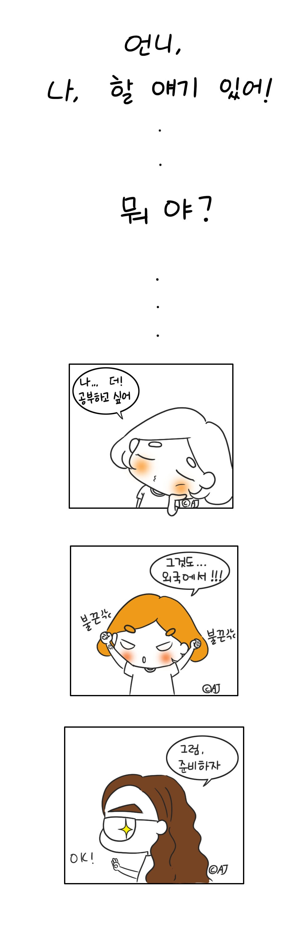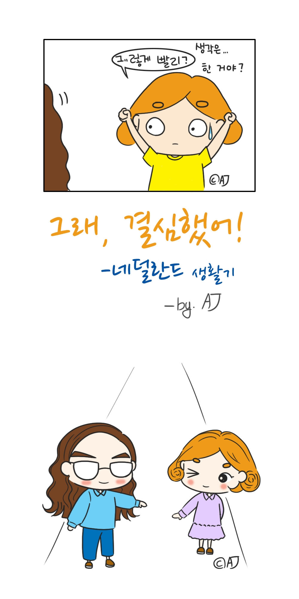 제이제이와 동생 앤지가 함께 첫 해외생활을(네덜란드) 한 경험과 일상을 브런치 웹툰에서