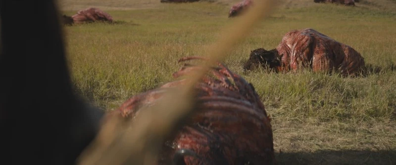 아침이 되자 평지로 이동한다. 벌판에는 가죽이 벗겨진 들소의 사체들이 여기저기 널브러져 있는 끔찍한 모습이다.