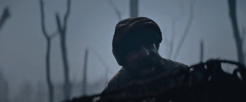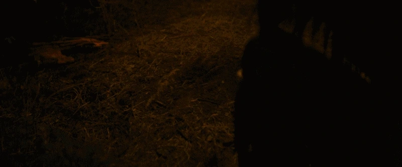 곰이 보이지 않는 무언가와 격하게 싸우기 시작한다. 정체를 드러낸 외계 포식자 ‘프레데터’의 강한 힘을 목격하게 된다. 곰을 내동댕이 친다.