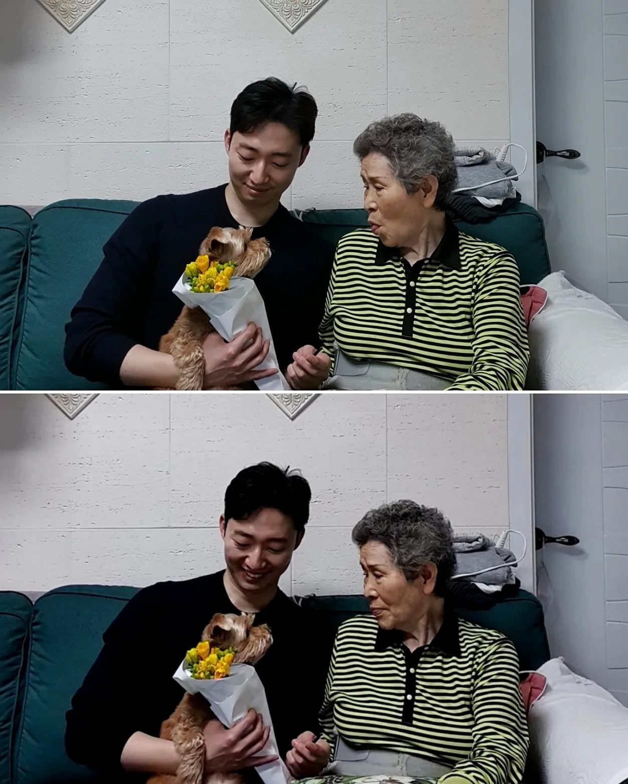 또 손자의 농("아니, 꽃을 무슨 마이크처럼 들고 계셔")에 활짝 웃는 할머니.