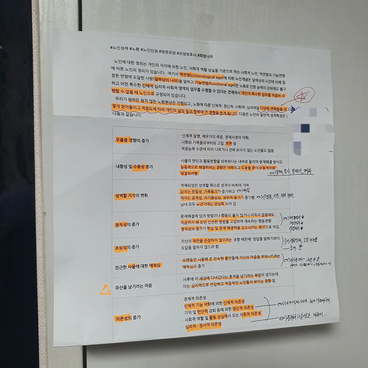출력 후, 나름 중요하다고 생각하는 부분을 메모하고, 형광펜도 직직 그었다. 마지막으로 내가 (어쩔 수 없이) 지나치거나, 볼 수밖에 없는, '눈에 띄는 곳(이미지 참고)'에 이를 부착했다.