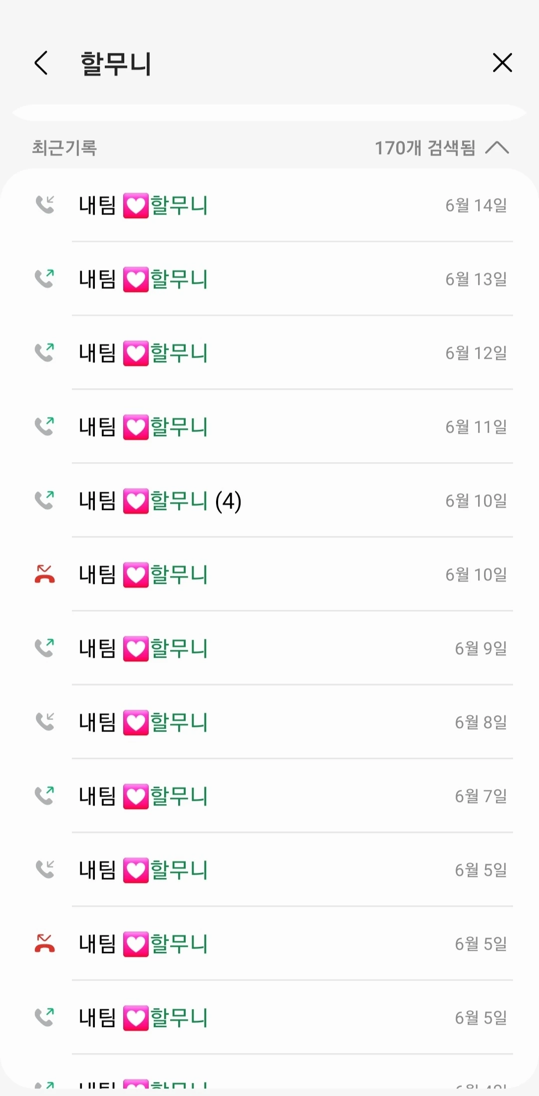 <최근 퇴근 전후 할머니와의 통화 기록(좌), 오늘도 잘 지내줘서 고마운 피나(우)>