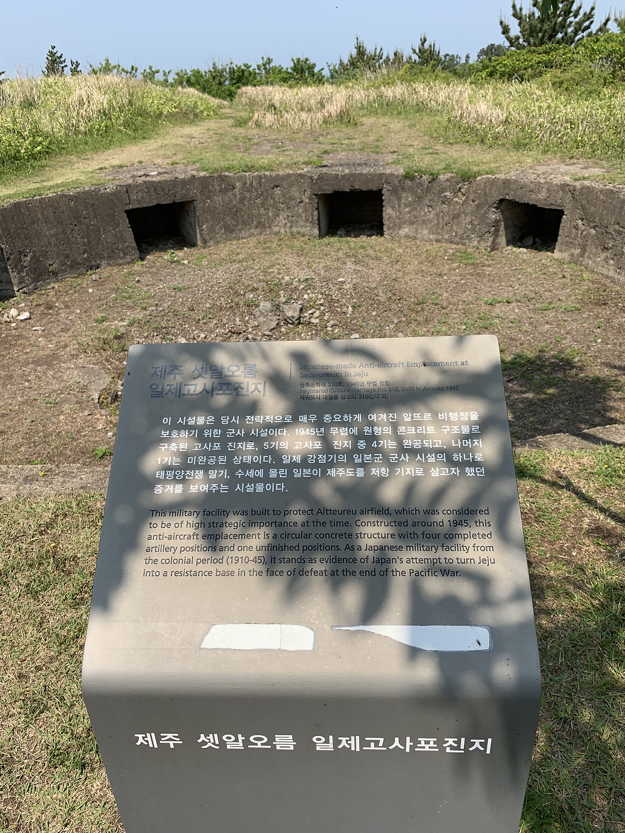 ‘알뜨르’는 제주어로 ‘아래 벌판’이라는 뜻이다. 일제강점기, 일본은 이곳을 중일전쟁을 위한 전초기지로 삼고 제주도민을 강제로 동원해 군용 비행장을 건설했다. 지금은 농지가 된 그 비행장 한편에, 격납고들이 유적처럼 서 있다. 그 풍경 앞에서, 해군기지 건설 등으로 제주도를 반복해서 군사 요충지로 삼아온 현대사까지 자연스레 떠올랐다. 역사는 반복된다. 하지만 그 역사를 몸으로 기억하는 사람들에게는, 그 반복의 고통 또한 되풀이된다. 위정자들은, 그 무게를 알고는 있을까.