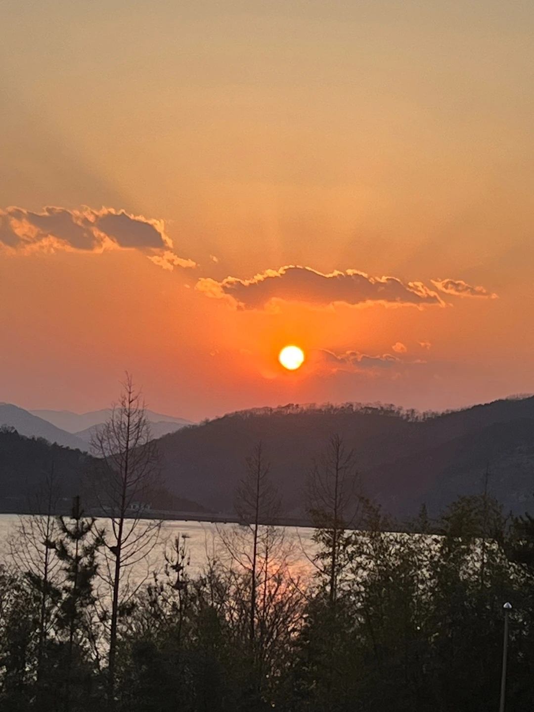 날은 포근했지만 아침까지 찬바람이 불어 봄이면 흐드러진다는 벚꽃을 안타깝게도 보진 못했지만 저녁 호수 산책은 가히 매력적이었다.