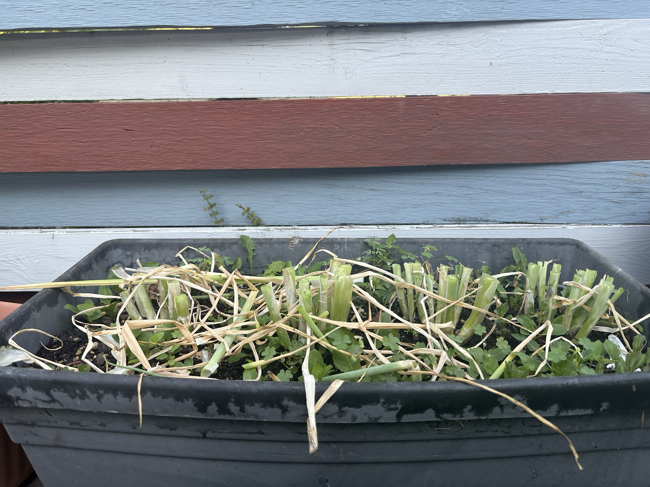 시든 것들을 정리하고 통에 담으니 한가득이다.